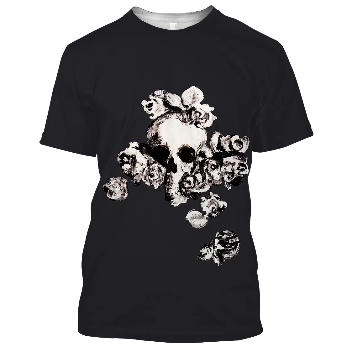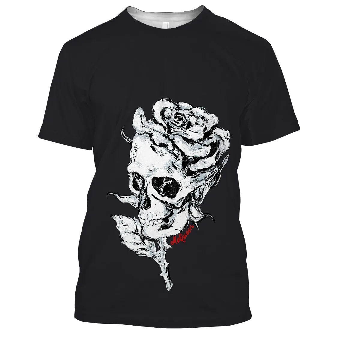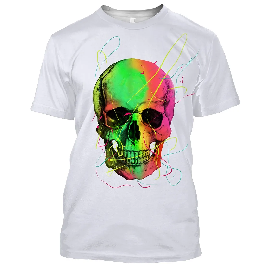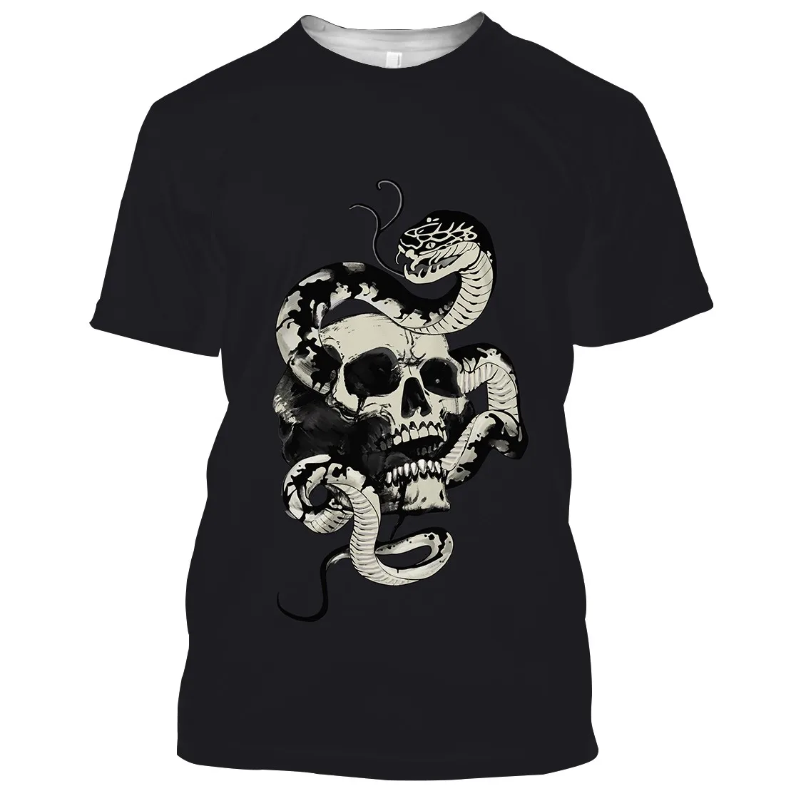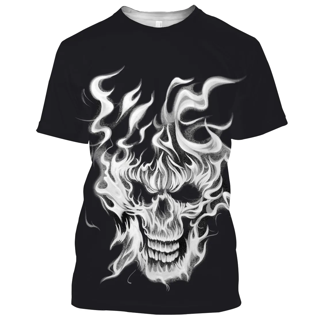 Футболка мужская с 3D-принтом черепа, модная тенниска оверсайз в стиле панк, майка с короткими рукавами, уличная одежда, лето
