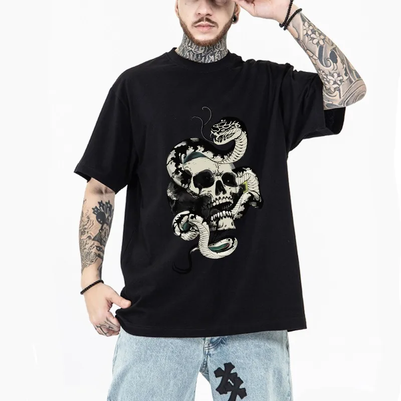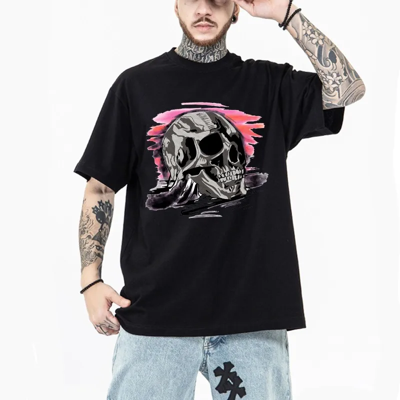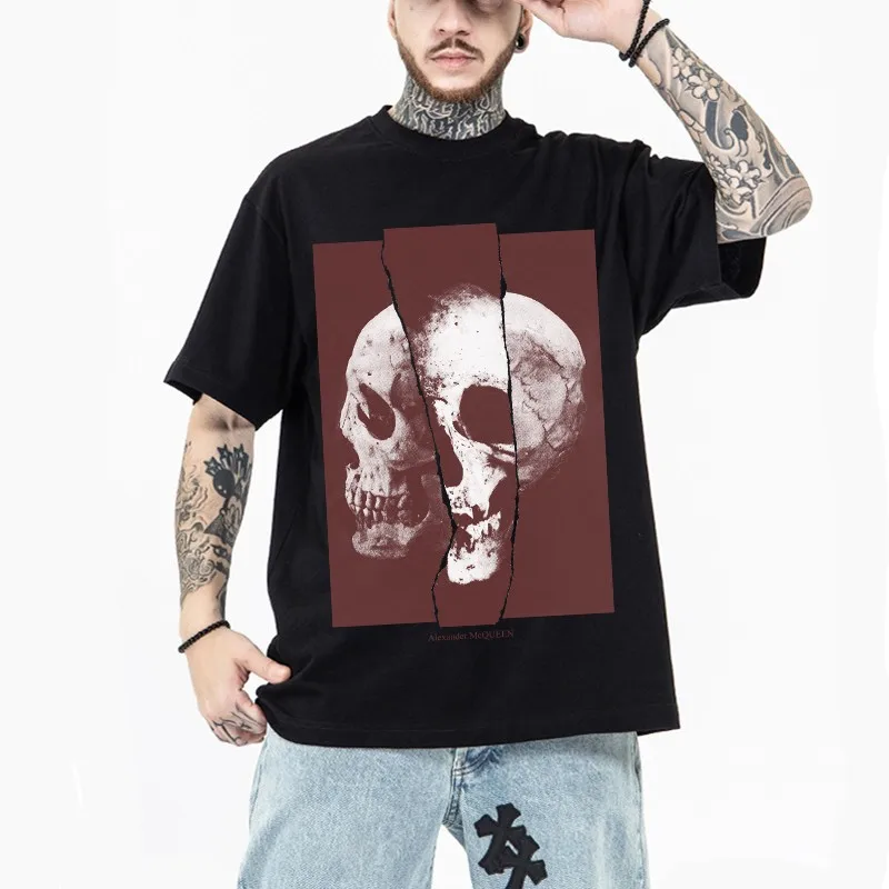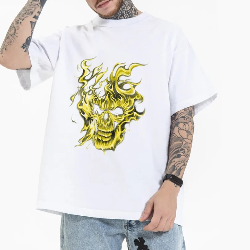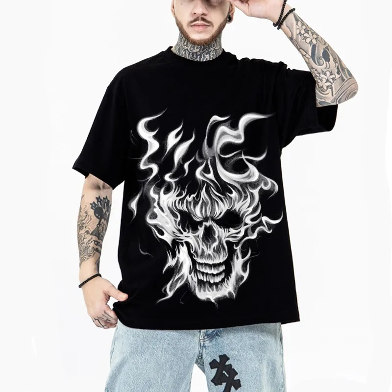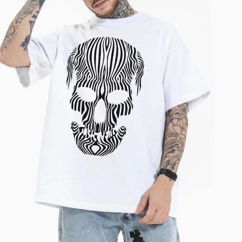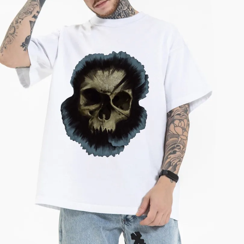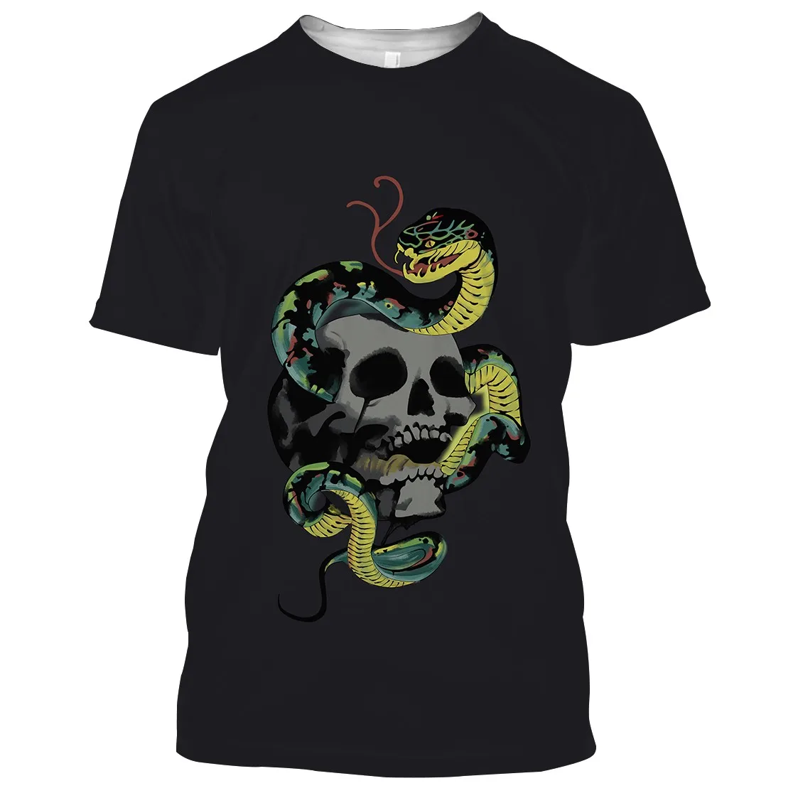 Футболка мужская с 3D-принтом черепа, модная тенниска оверсайз в стиле панк, майка с короткими рукавами, уличная одежда, лето