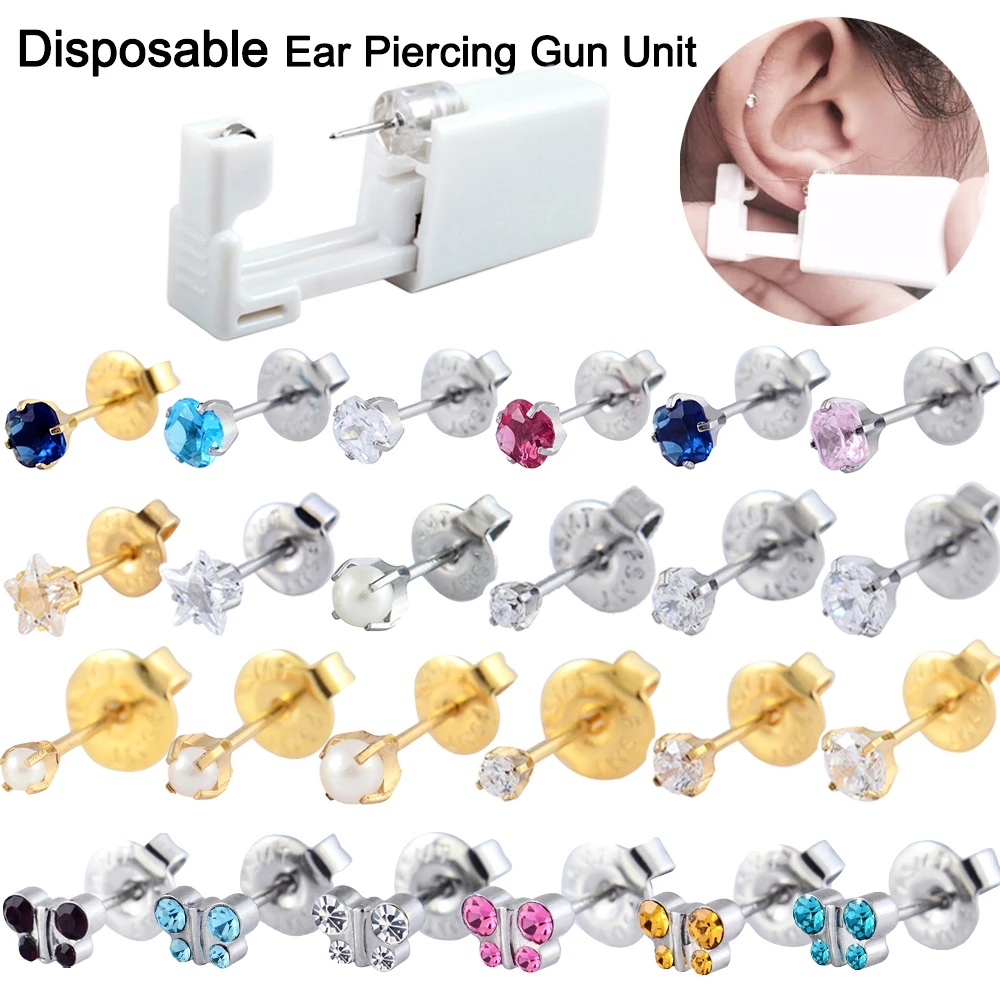 Пистолет одноразовый стерилизованный Для Пирсинга Ушей, гвоздик из хирургической стали с жемчужным цирконием и покрытием 24-каратным золотом, прокол козелка уха, 1 шт.