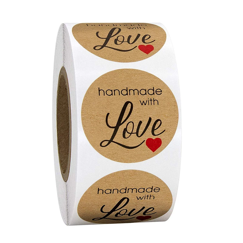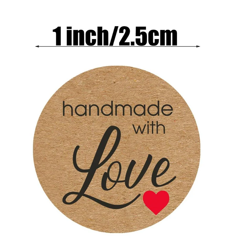 500 шт.рулон, круглые наклейки с надписью Handmade with Love