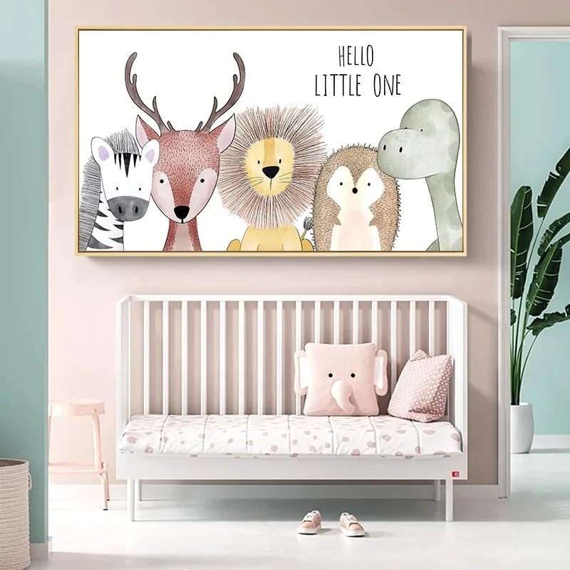 Картина для детской, с изображением Льва, жирафа, мальчика