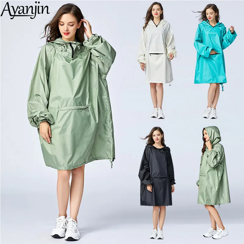 Новинка 2021, Женский стильный водонепроницаемый дождевик-пончо, дождевик с рукавами с капюшоном и большим карманом спереди.