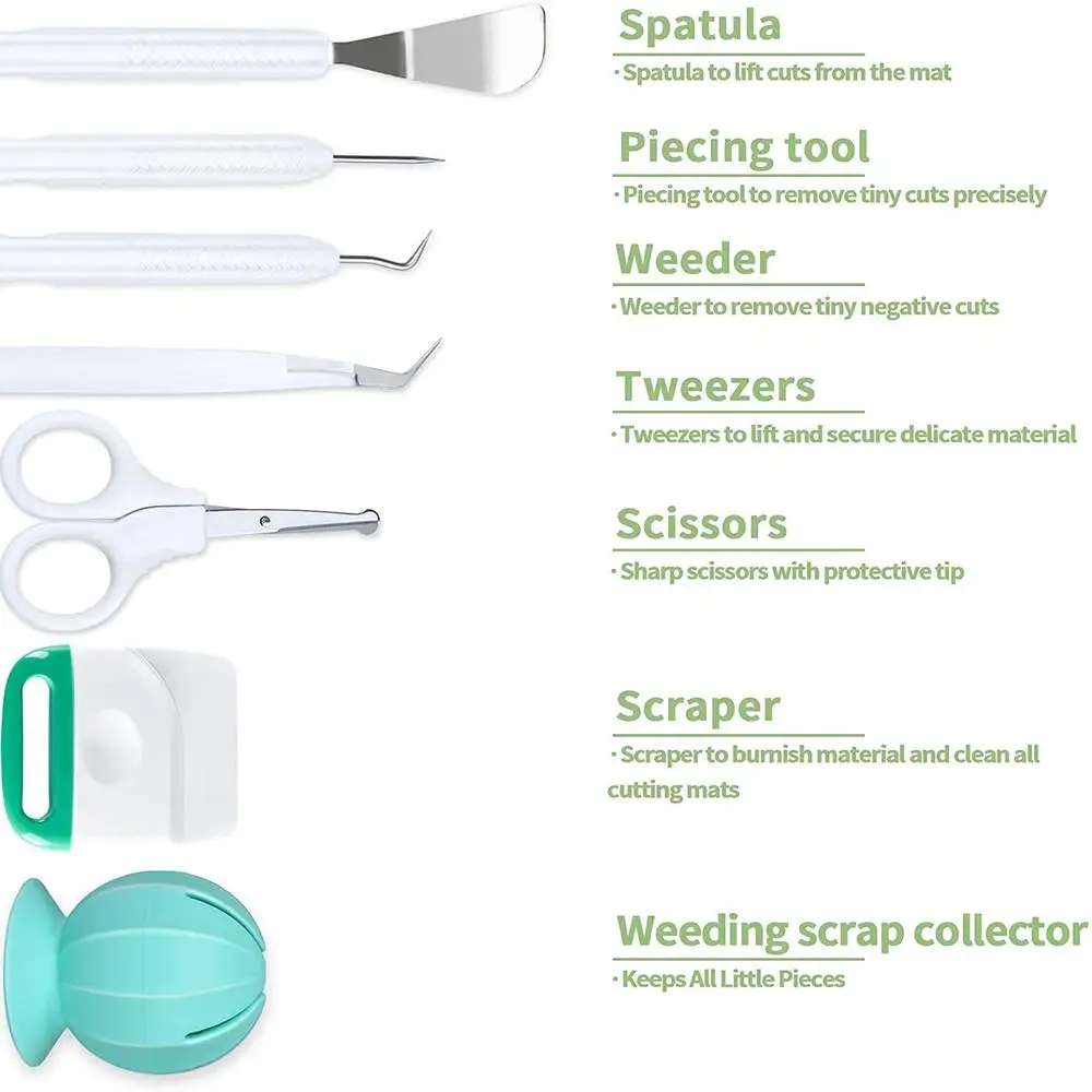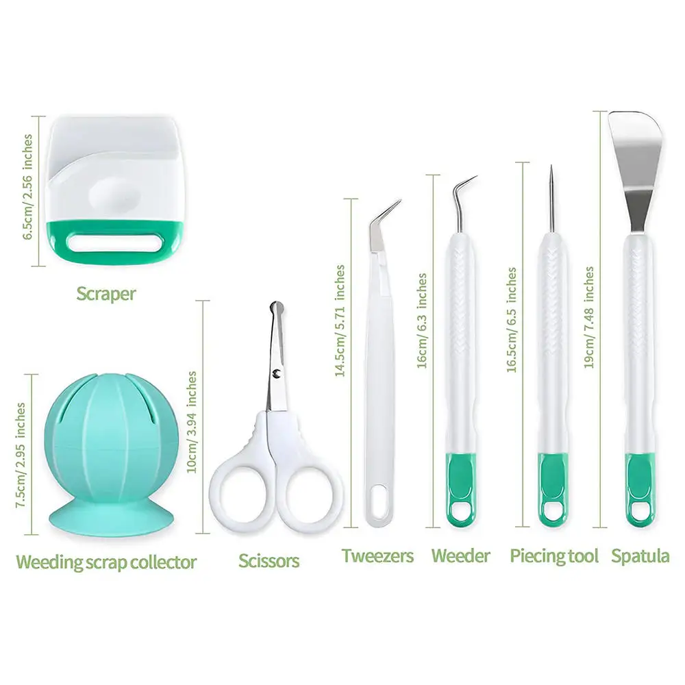 Набор инструментов с шестью инструментами. Включает в себя: ножницы, пинцет, крючок, скребок, шпатель и шпатель стилус для использования с Cricut Explore ore и машины для изготовления.