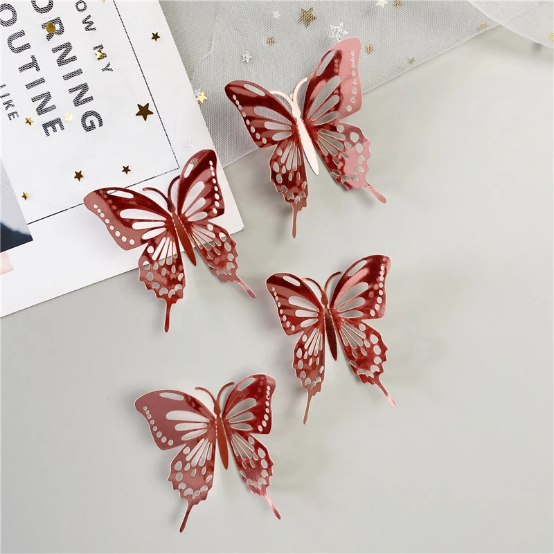 12 шт.лот Креативные 3D полые золотые серебряные бабочки настенные ...