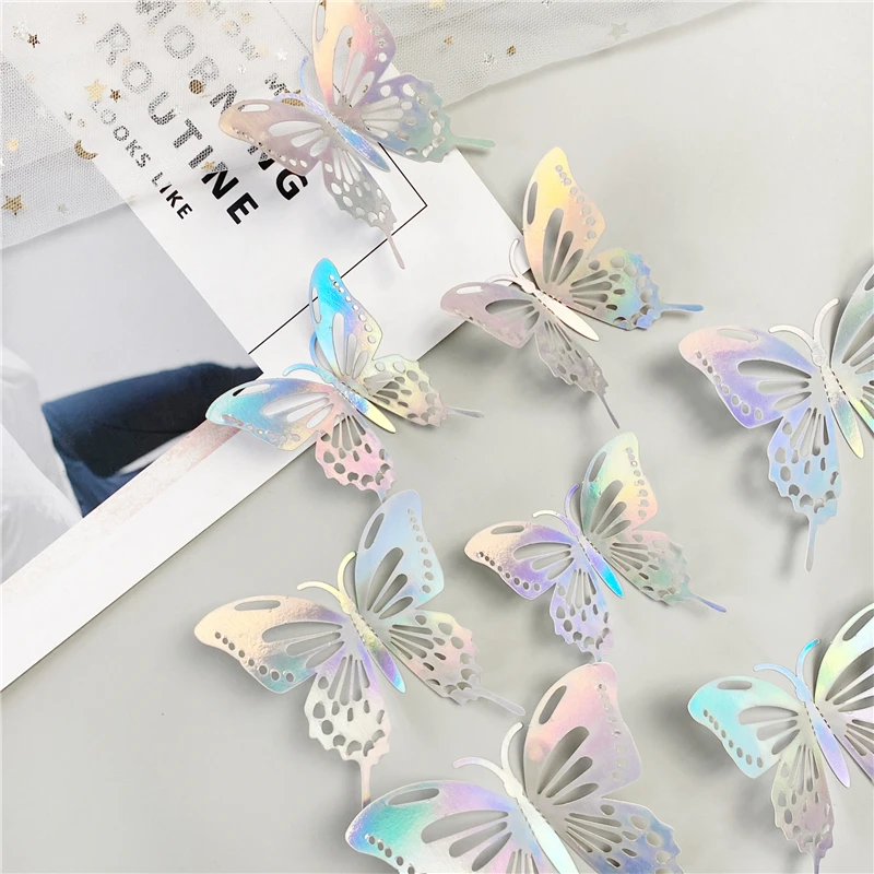 12 шт. 3D полые наклейки на стену в виде бабочки DIY искусство для ...