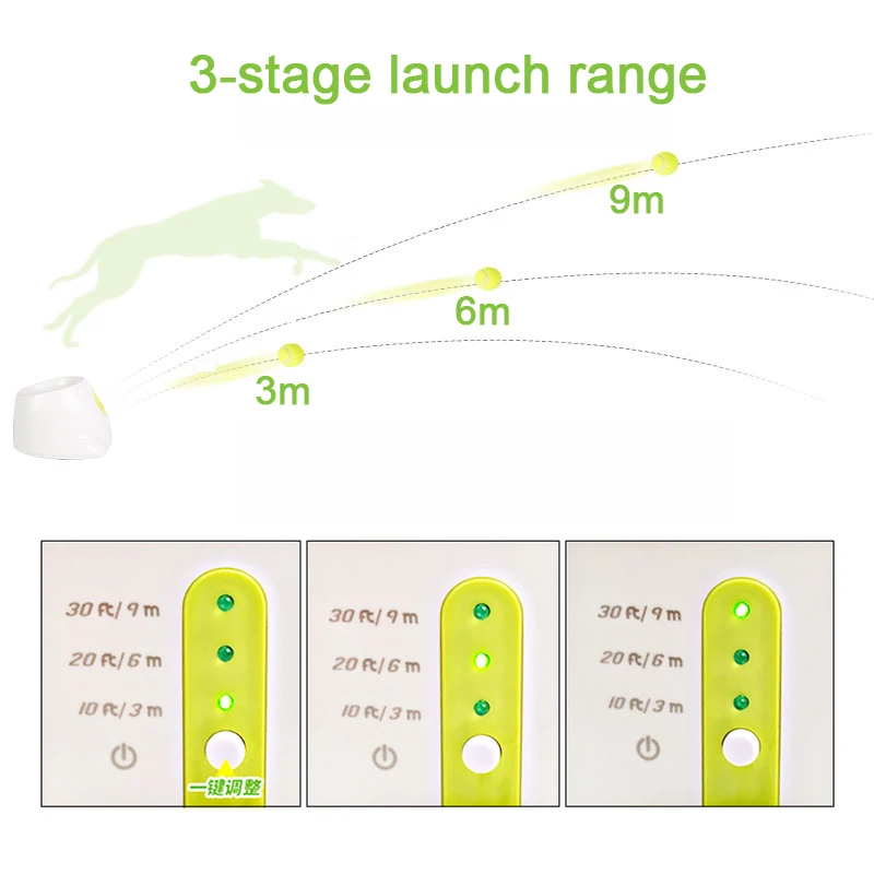 После запуска нажмите несколько выключателей питания, соответственно, чтобы выбрать расстояние броска 3 метра/6 метров/9 метров.