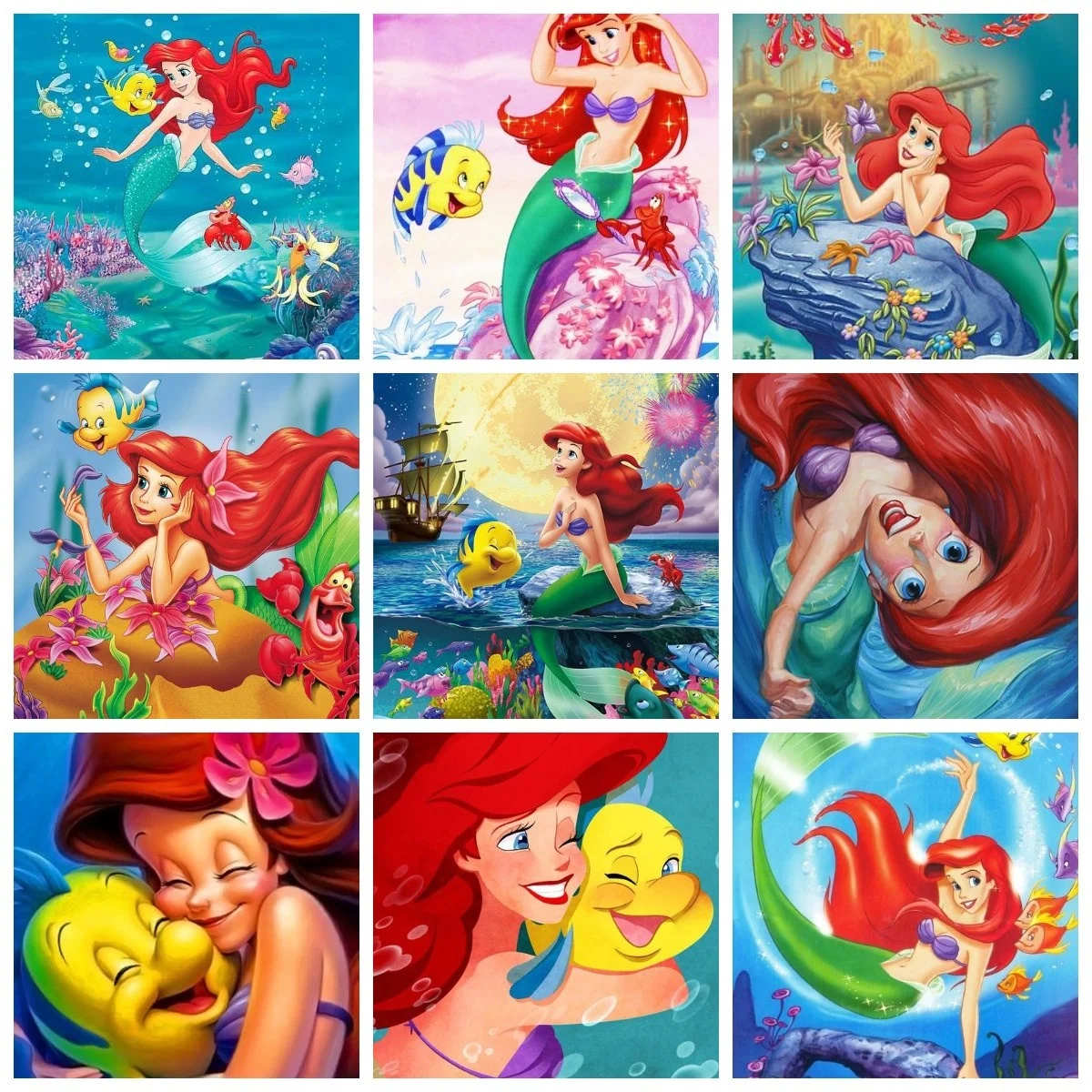 Алмазная живопись сделай сам, Набор для вышивки крестиком из Дисней, маленькая Русалочка, Принцесса Ариэль и принц, мозаика для домашнего декора