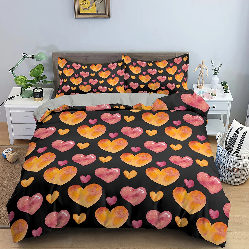 Комплект постельного белья для пар, пододеяльник с розовым сердцем,...