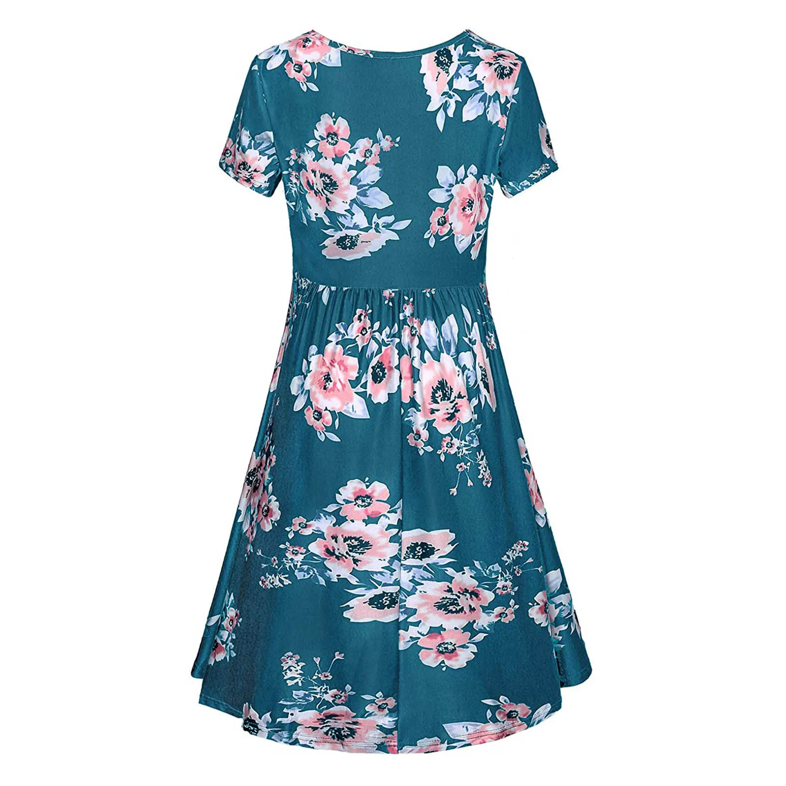 Женское летнее платье с коротким рукавом, круглым вырезом и принтом