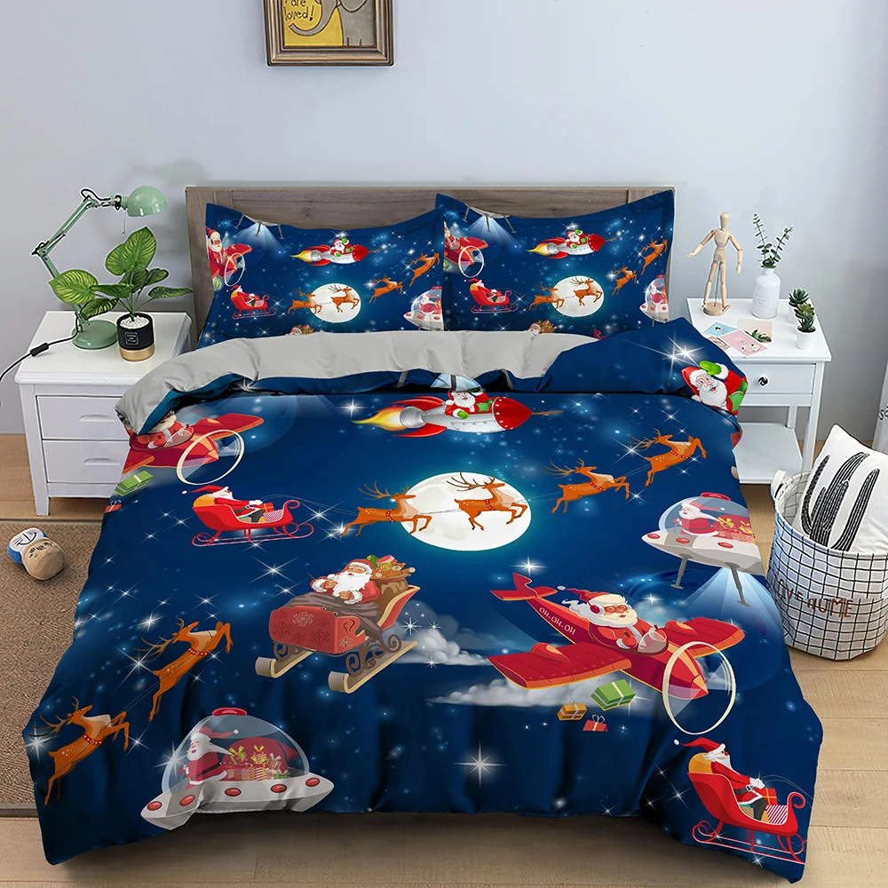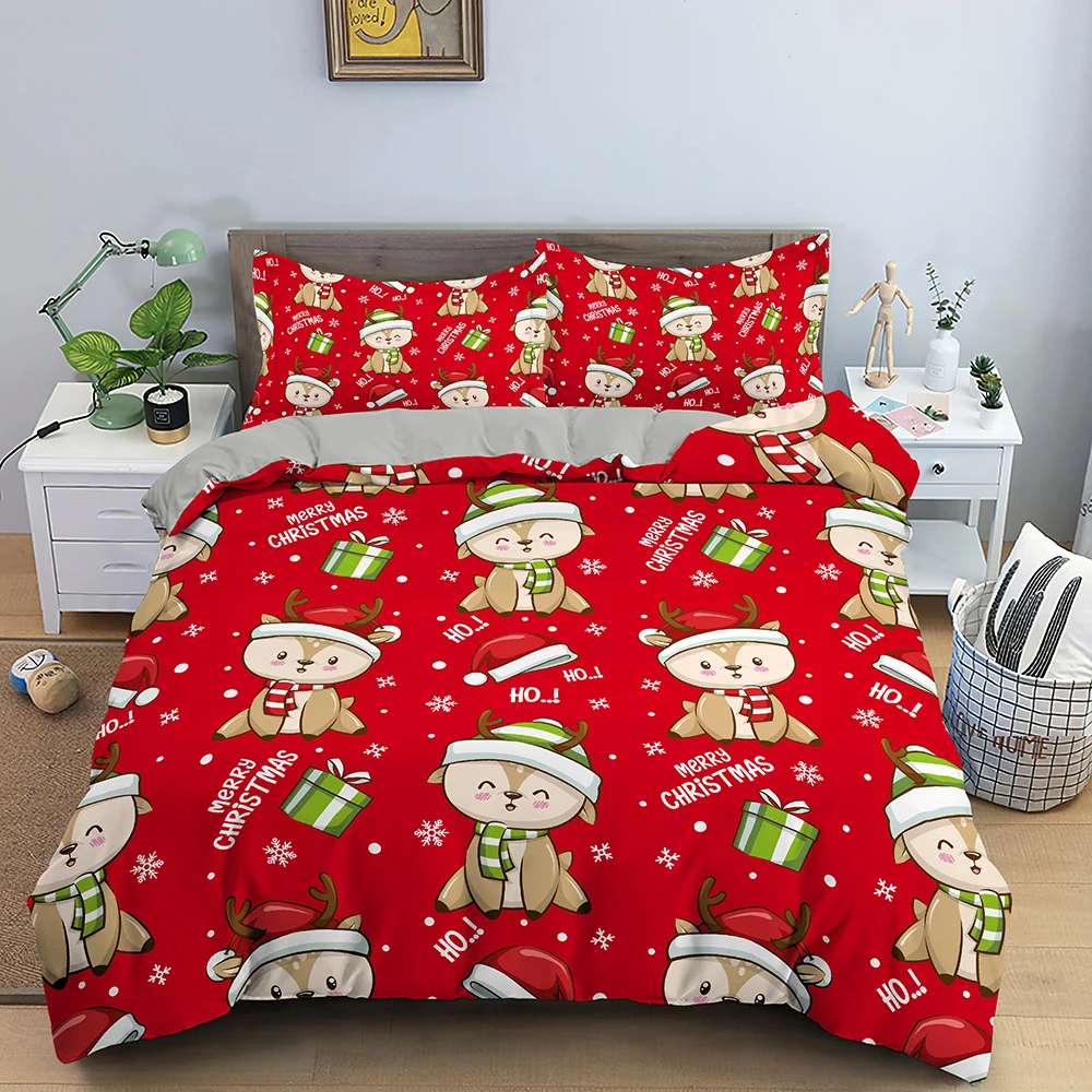 Комплект постельного белья с рисунком Санта-Клауса, Рождественский олень, двойное покрывало для детей, размеры Queen