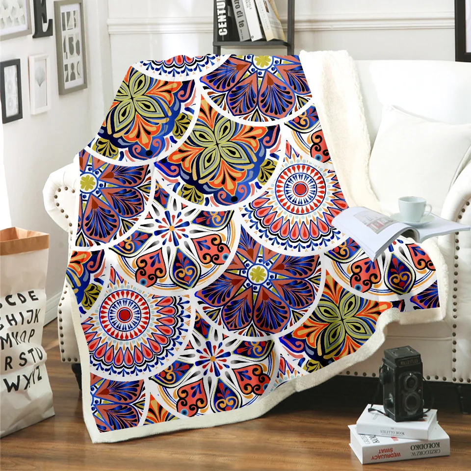 Одеяло с мандалой в стиле бохо, для кровати, дивана, толстое шерпа, покрывало из овечьей шерсти, домашнее зимнее теплое Флисовое одеяло, декоративное покрывало