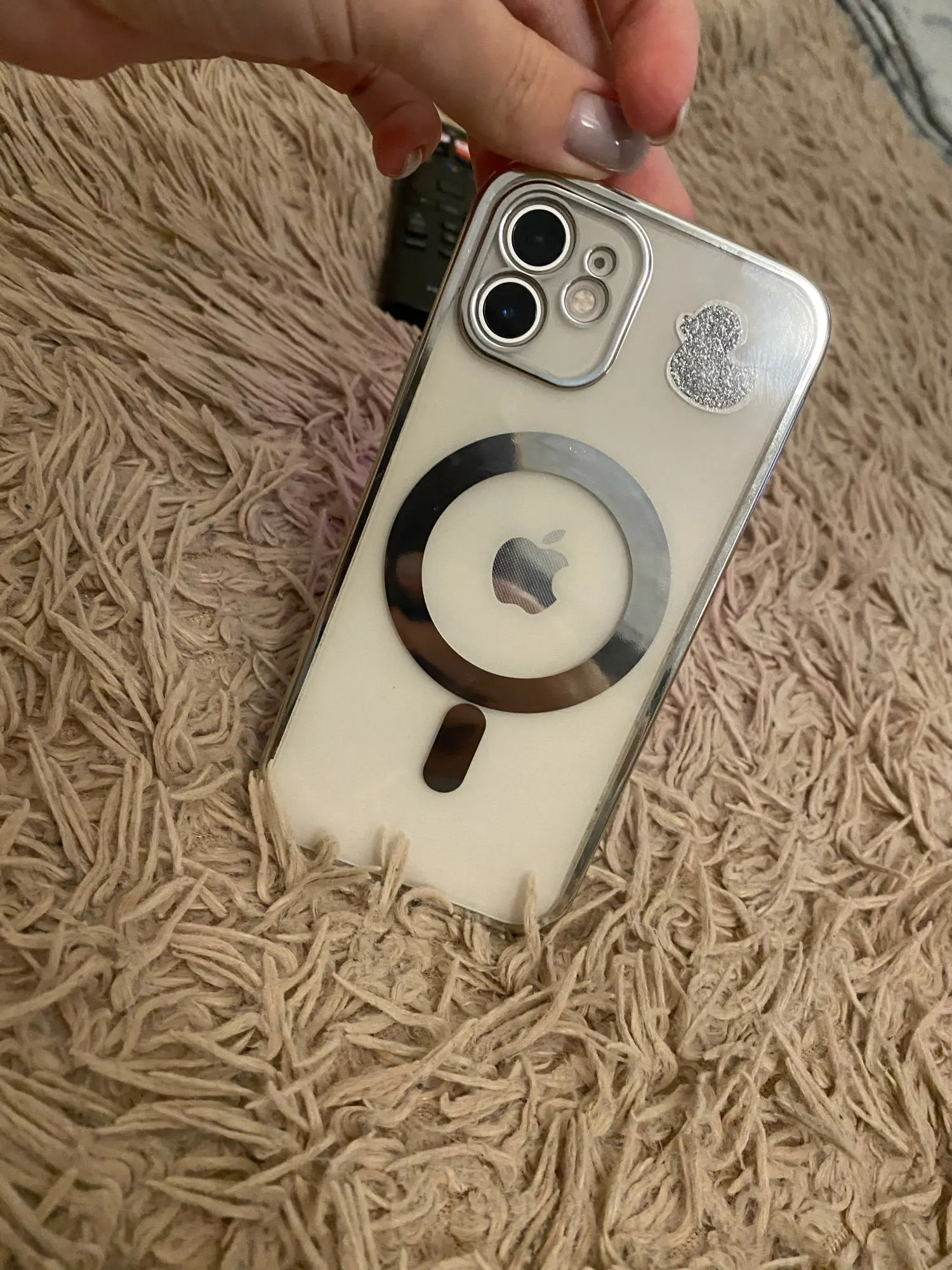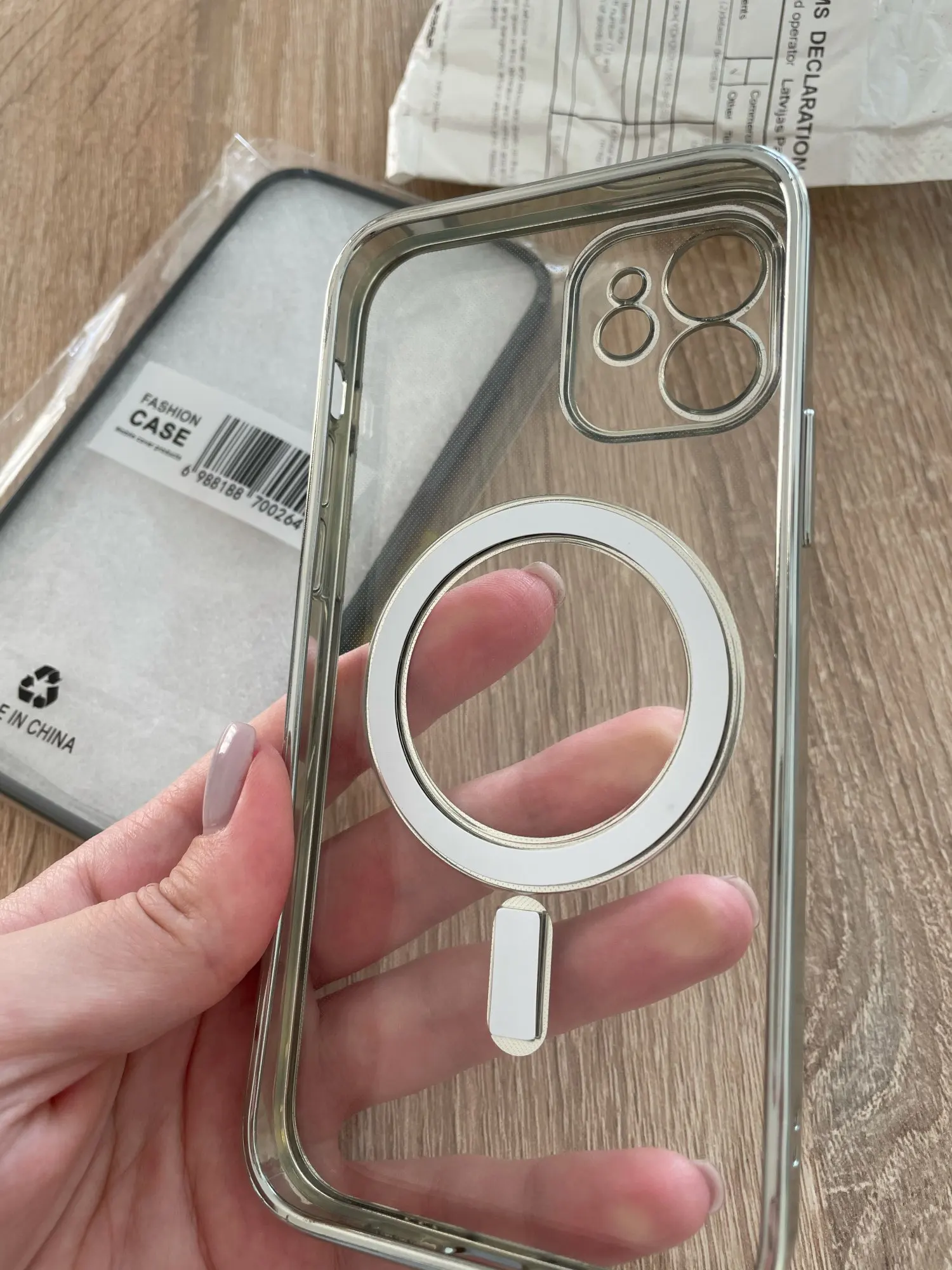Не обратила внимание на маркировку «серебряный» при заказе. Была уверенна, судя по фото, что чехол прозрачный а магнит выделен белым. В итоге-серебристая краска, которая выглядит дёшево и некрасиво. Особенно плохо выглядит рамка вокруг камеры. Качество неплохое, но эта краска ужасная. Черный вариант гораздо симпатичнее.