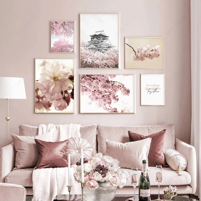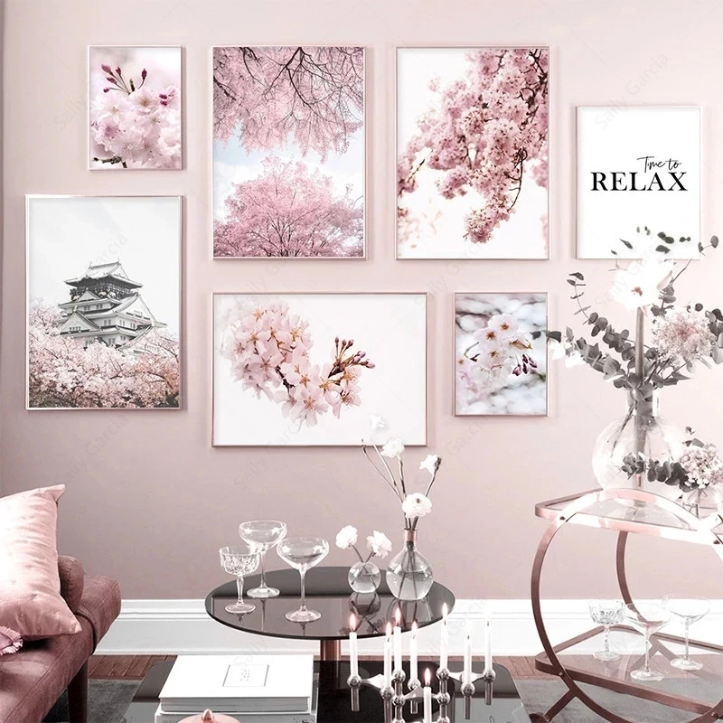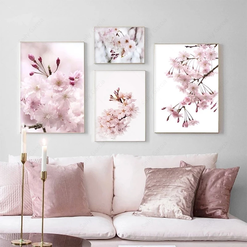 Вишня, настенная живопись, постер с розовыми цветами, пейзаж современное искусство, принт, скандинавские настенные картины для декора гостиной