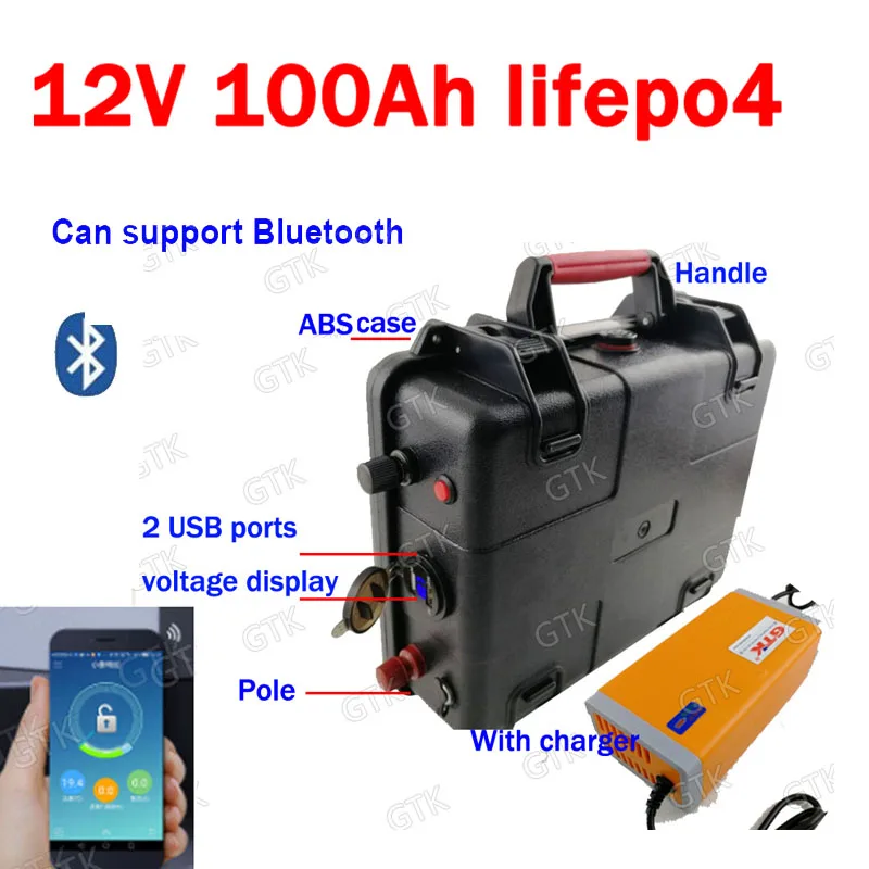 Литиевая батарея GTK lifepo4 12,8 В ач с bluetooth APP BMS 12 В Ач Аккумулятор для быстрой портативной мощности + зарядное устройство 10 А