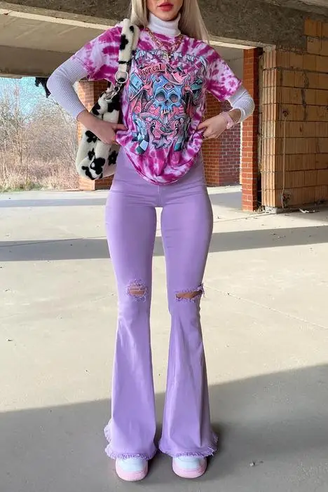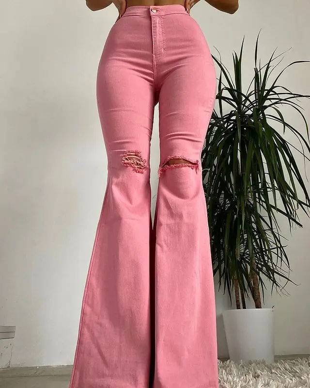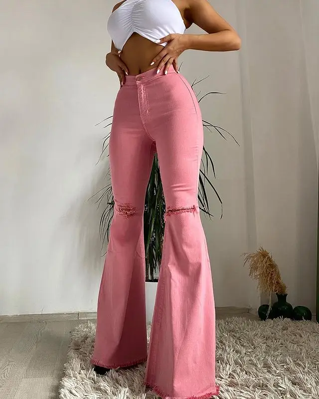 Женские джинсовые брюки-клеш wsevypo, однотонные облегающие брюки с завышенной талией, на пуговицах, с дырками, летняя одежда