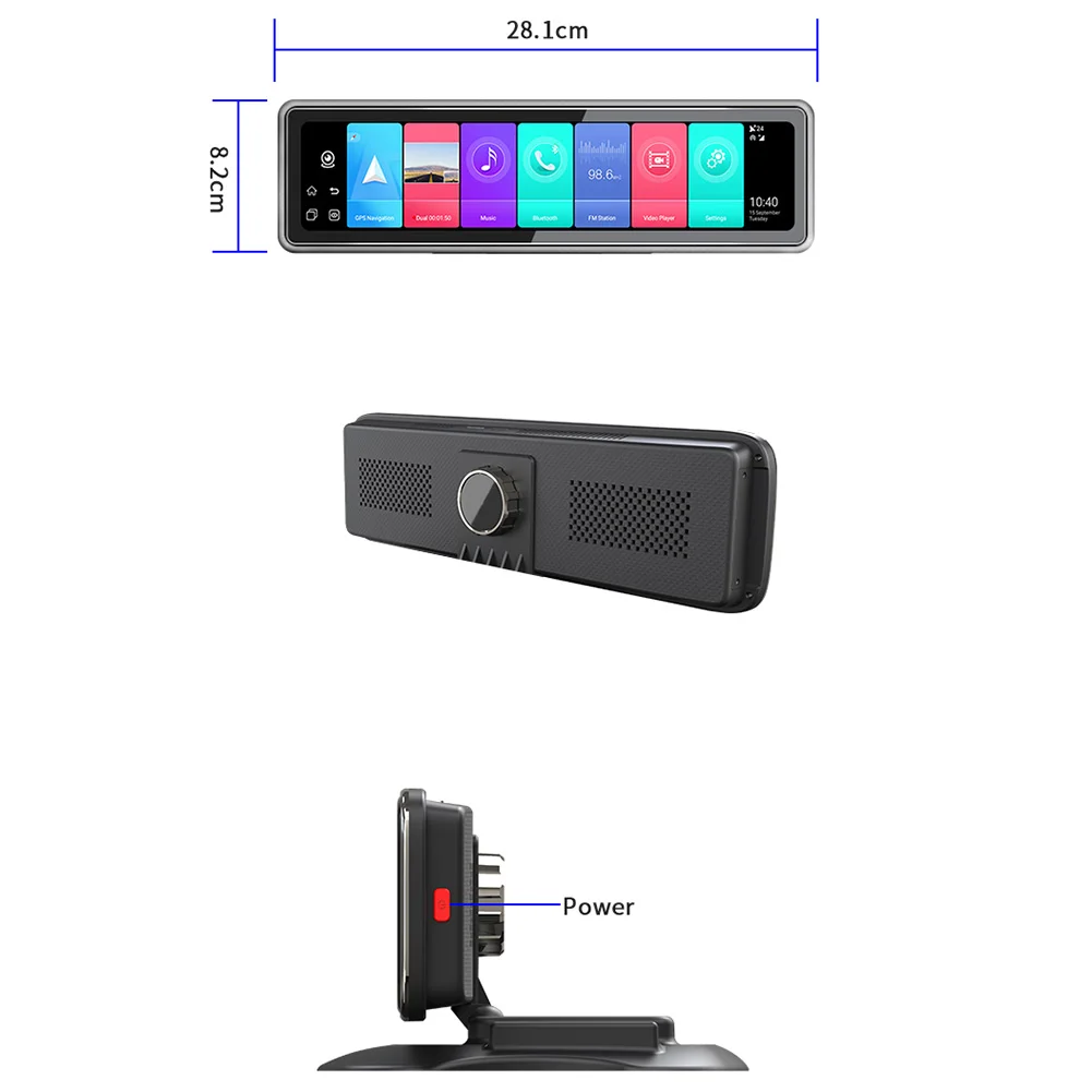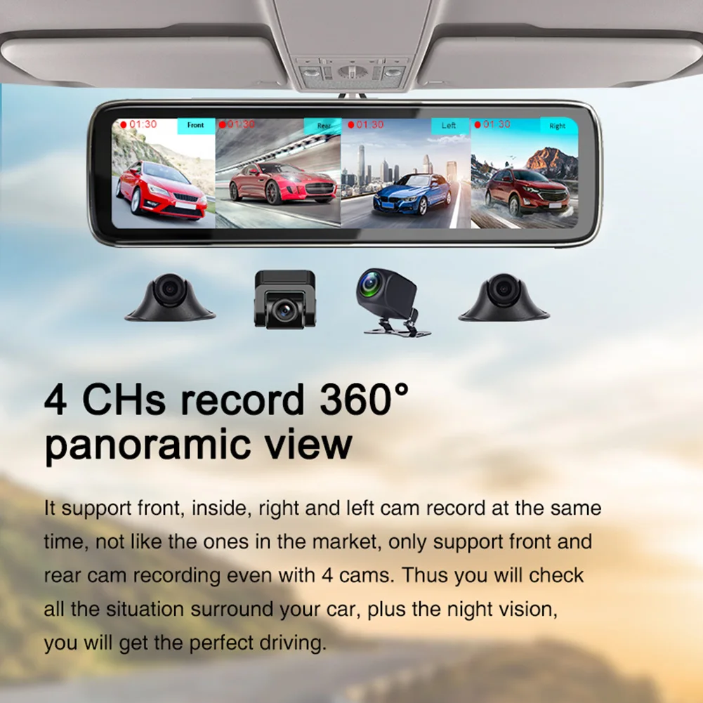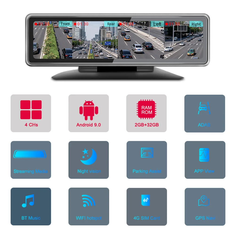 Видеорегистратор, 4G, Android 9.0, 12-дюймовый панорамный видеореги...