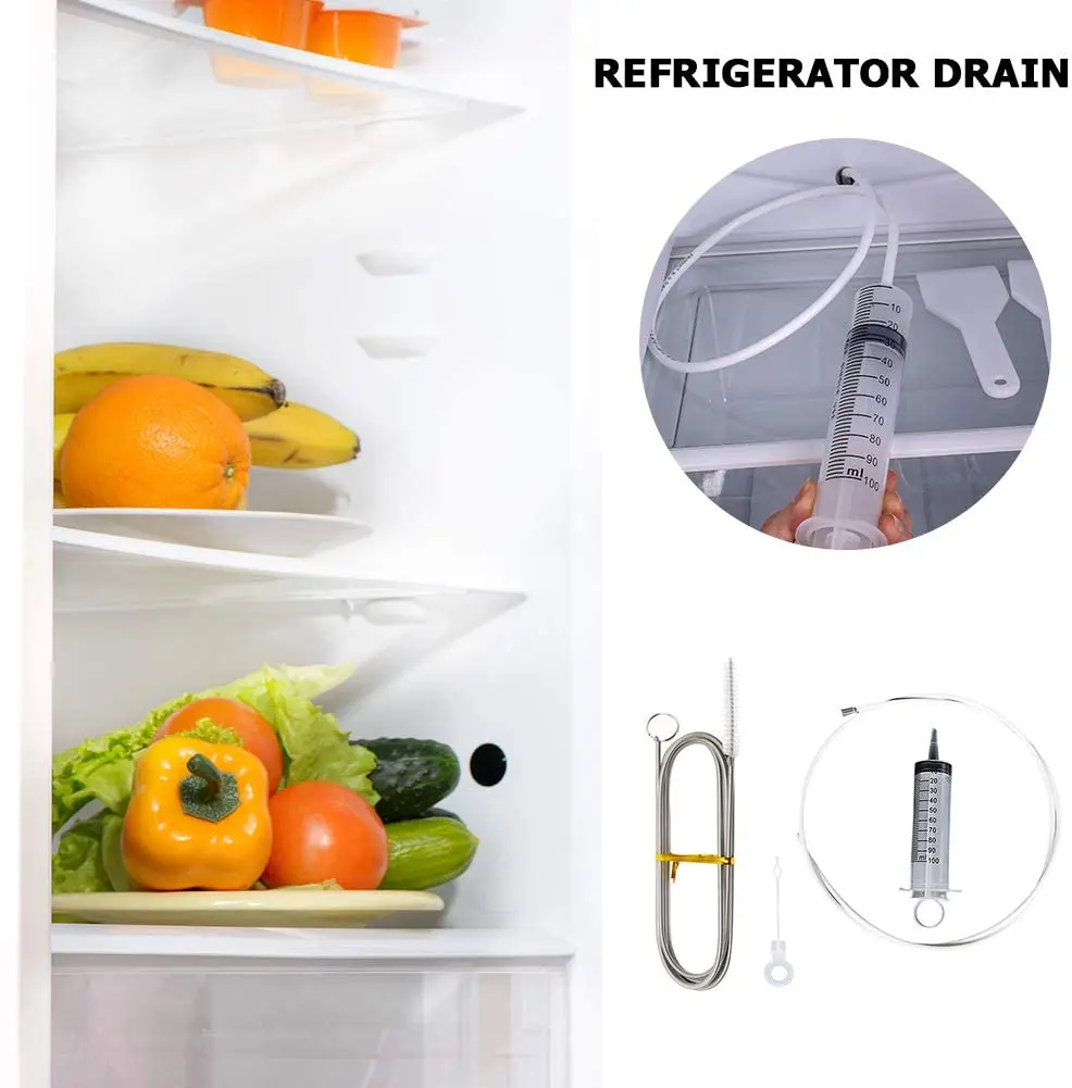Портативный набор для очистки слива в холодильнике, набор для сливного отверстия, щетка для мытья, шприц, шланг, палочки для очистки домашнего холодильника
