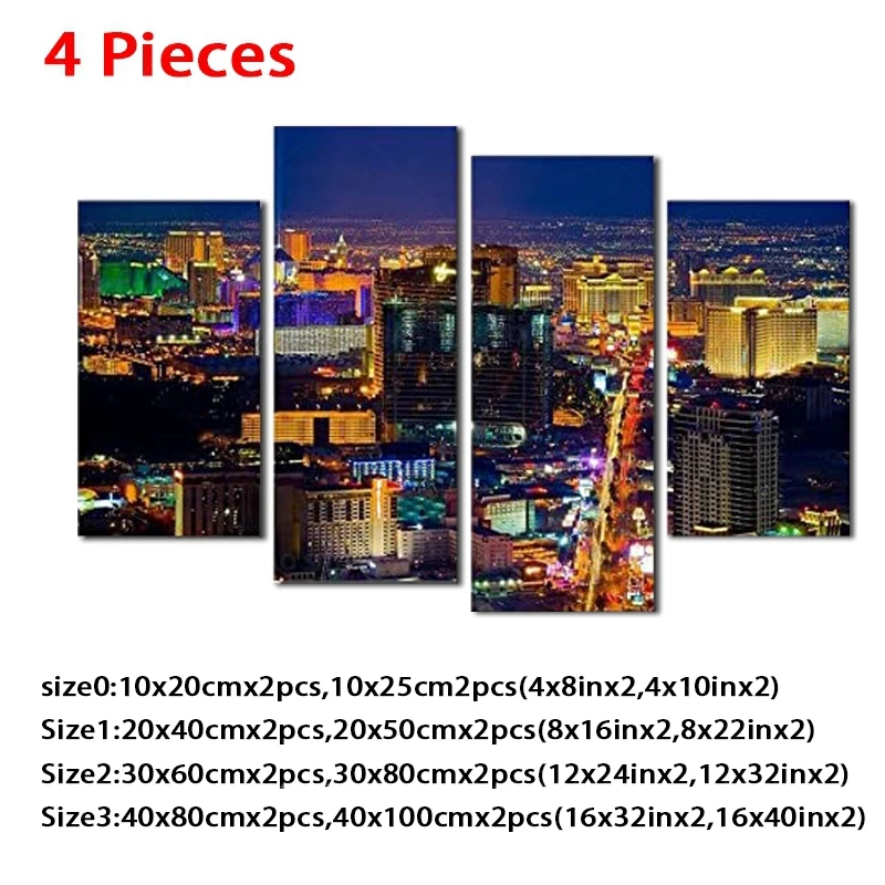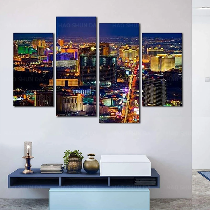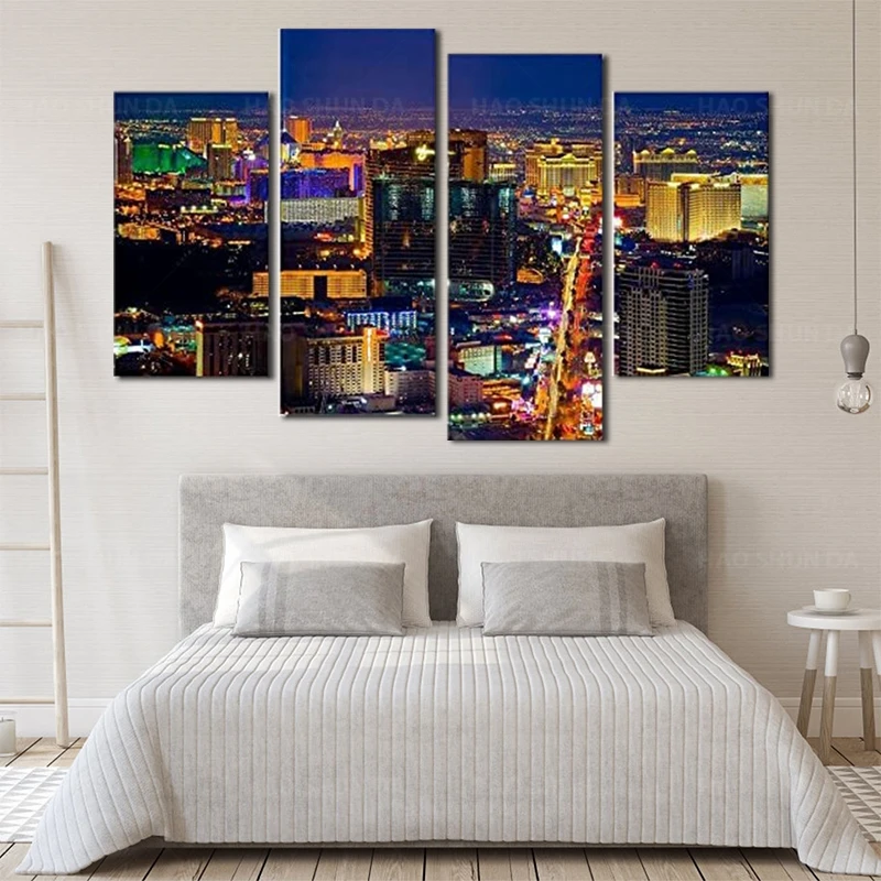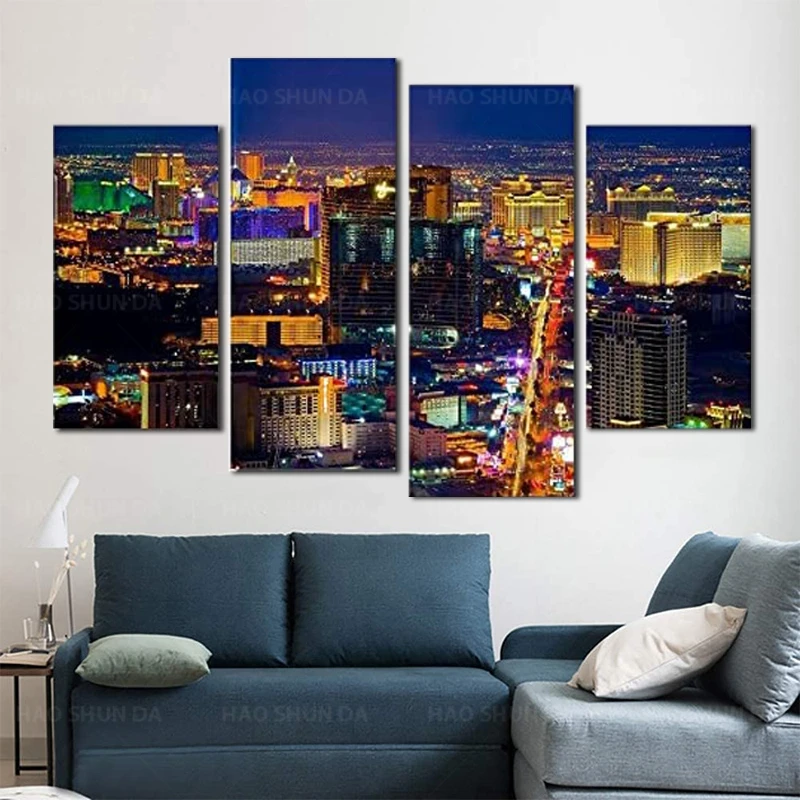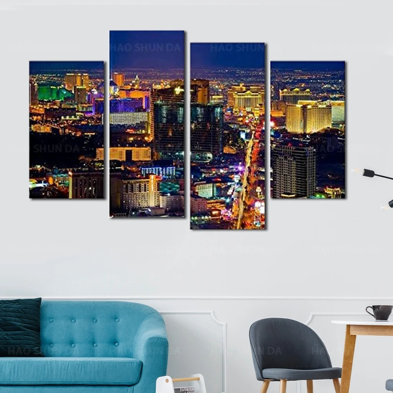 4 панели холст Художественная печать, Лас-Вегас казино города ландшафт плакат здание фото hd Печать настенная живопись для домашнего декора