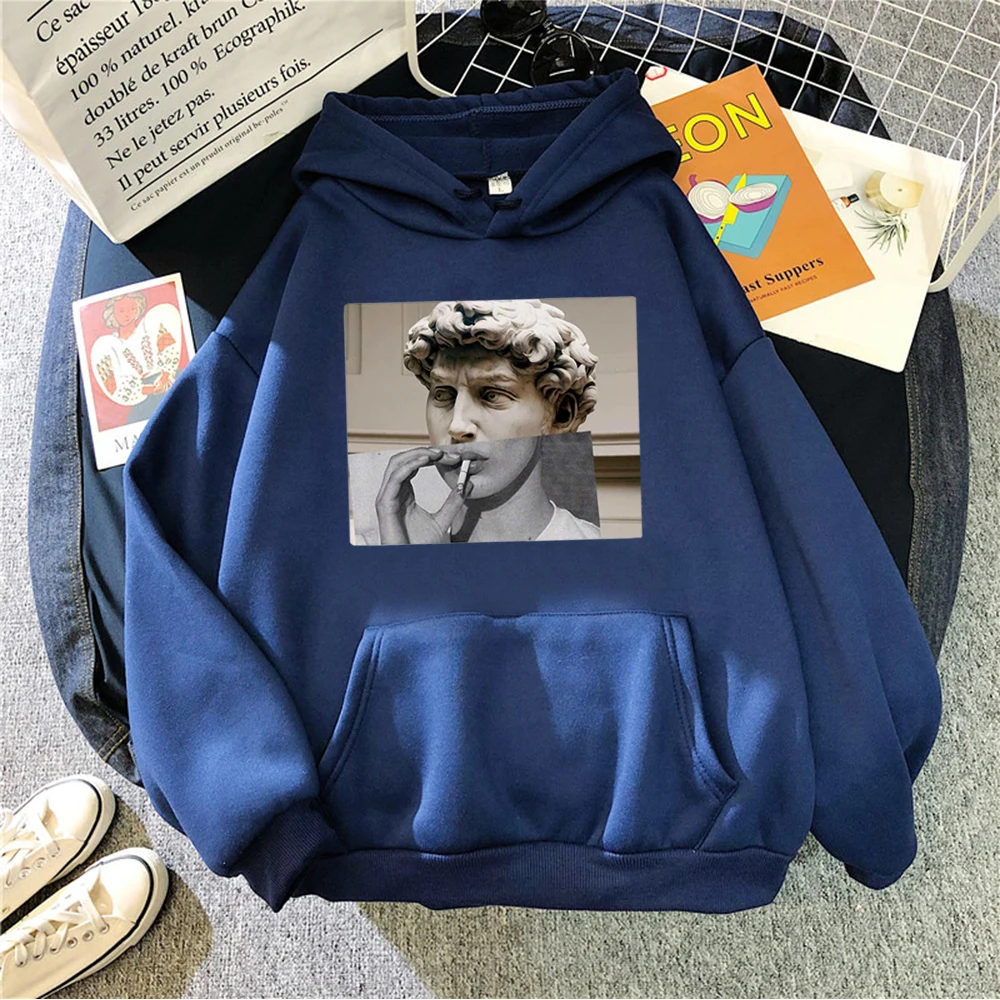 Толстовка мужская с капюшоном и принтом статуи Давида, винтажный Свободный пуловер, модная уличная одежда в стиле хип-хоп, флисовая толстовка