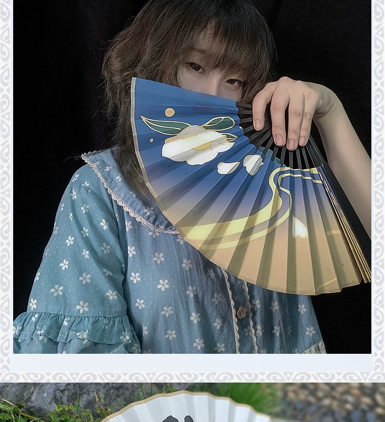Веер для косплея Game Genshin Impact Kamisato Ayaka, складной, двус...