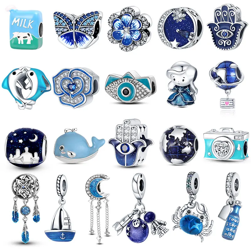 Новое поступление 100% Серебряный цвет кулон Звездный океан синяя серия Очаровательная Бусина Подходит для оригинального браслета Пандора Ожерелье женские ювелирные изделия