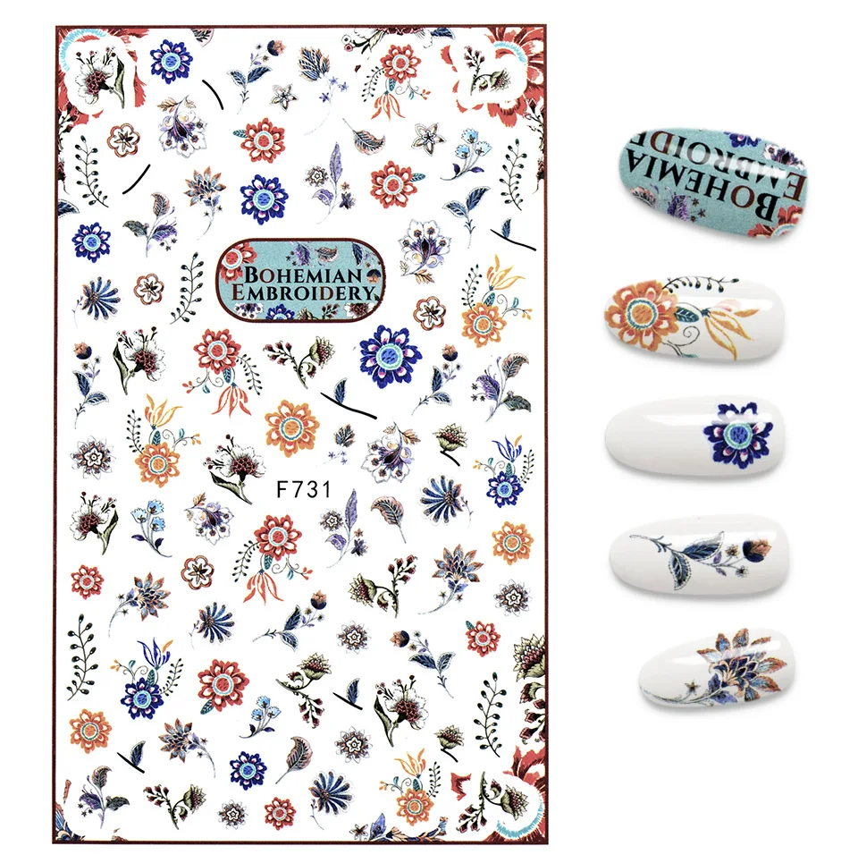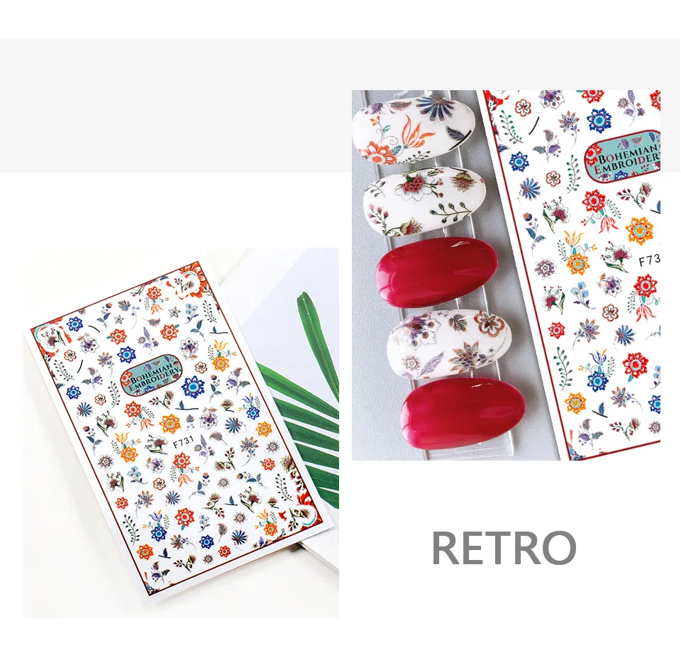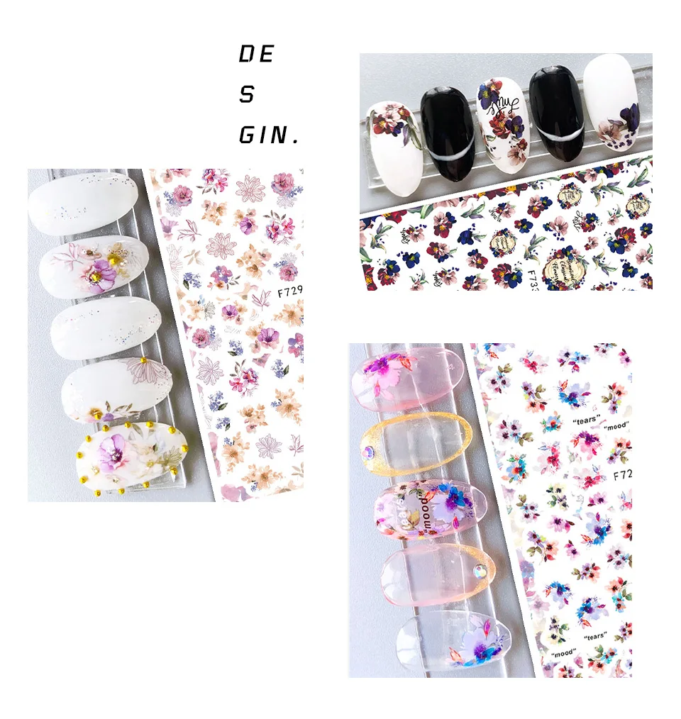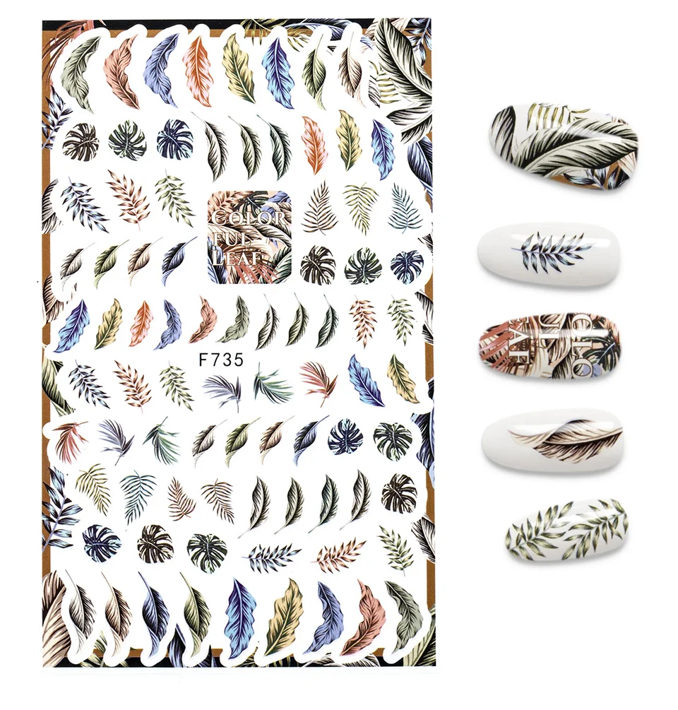 3D наклейки для ногтей, цветы, перо, дизайн, клейкий дизайн ногтей, Декор, фольга, слайдер, маникюрные наклейки для ногтей