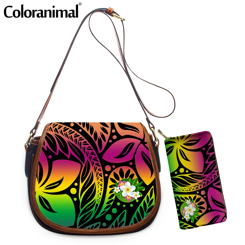 Сумка на плечо Coloranimal в новом стиле для девушек 2 шт.компл., женская сумка через плечо с коралловым принтом полинезийского племени и плюмерией