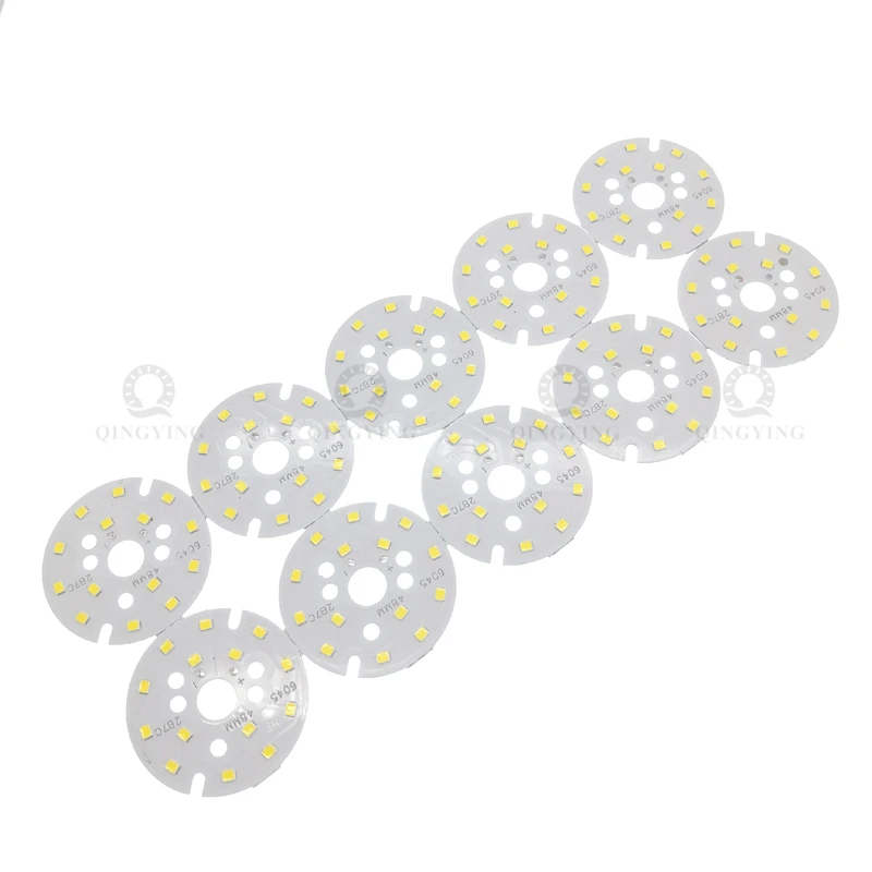 Все платы рабочие, толщина подложки 1 мм, светодиоды по 0,5 Вт. Омрачает только цвет, он не теплый. В лучшем случае это 4500-5000. Кто не любит желтый оттенок берите. Дырки сделаны точно как в продающихся на али радиаторах для ламп 5 и 9 Вт. Брал 12Вт и 7 Вт, в итоге работают на 5 и 9Вт, больше радиаторы не позволили, светят кстати не сильно хуже чем на номинале, возможно из-за этого свет более белый, но 3000-4000 тут точно нет.