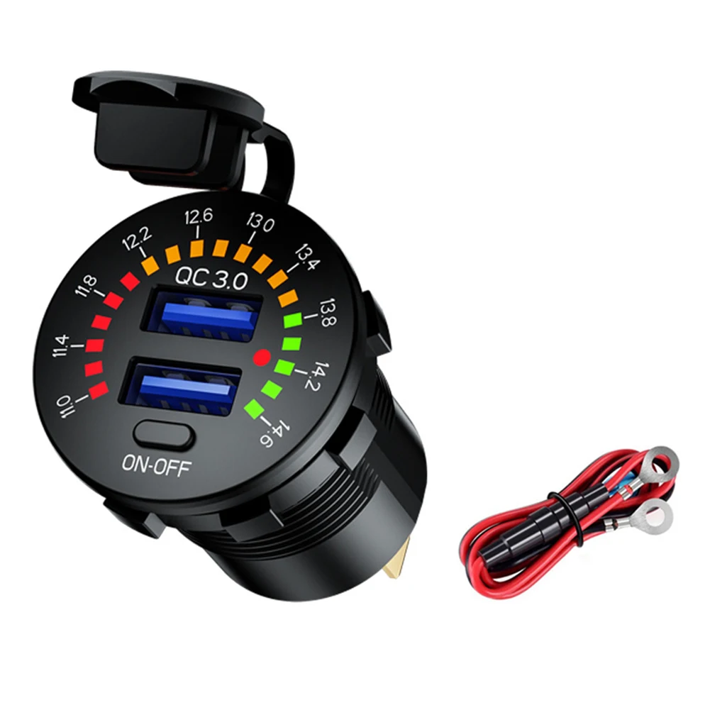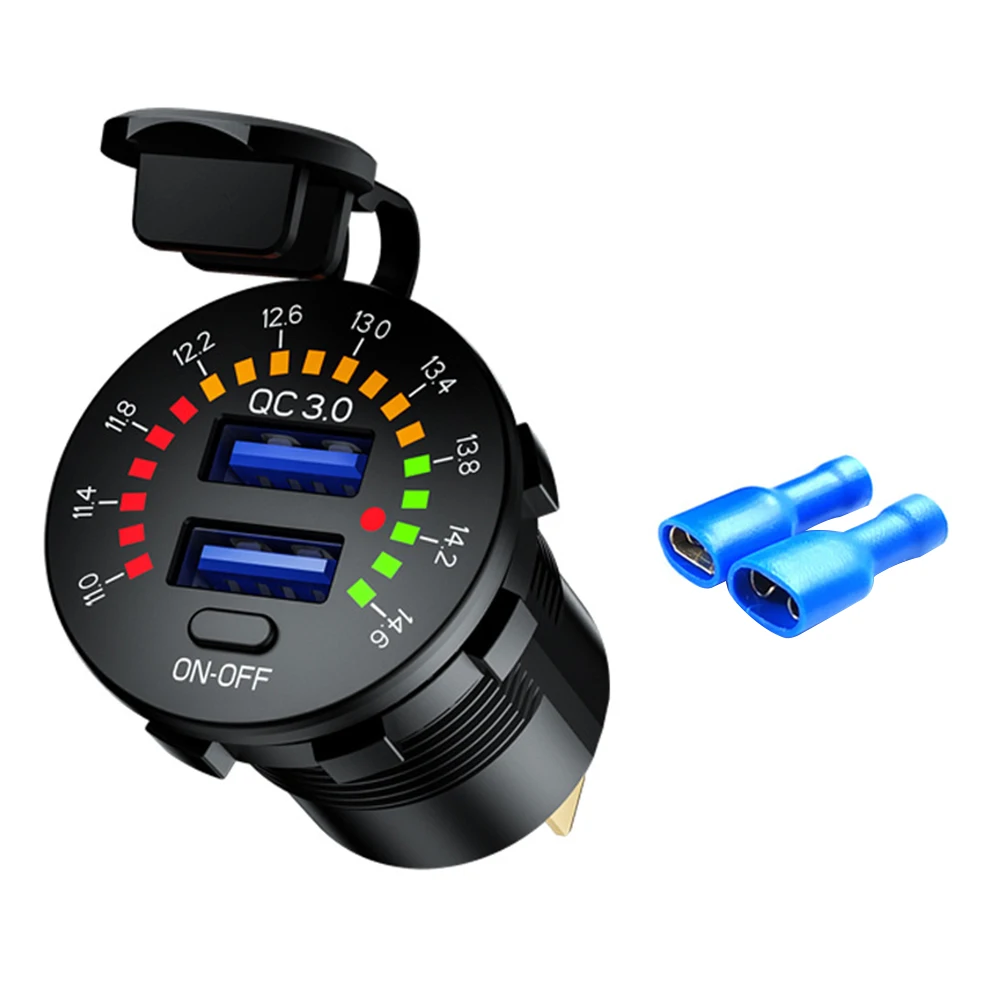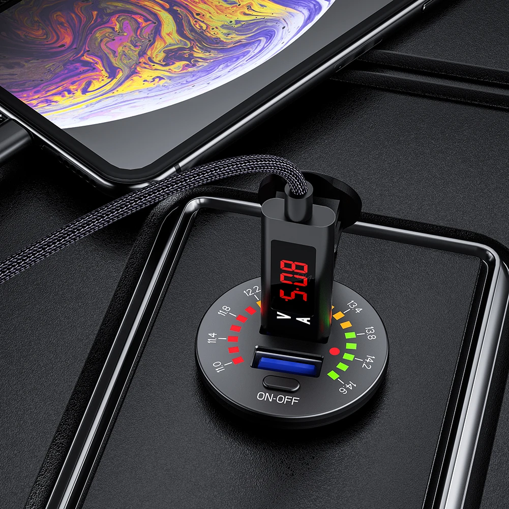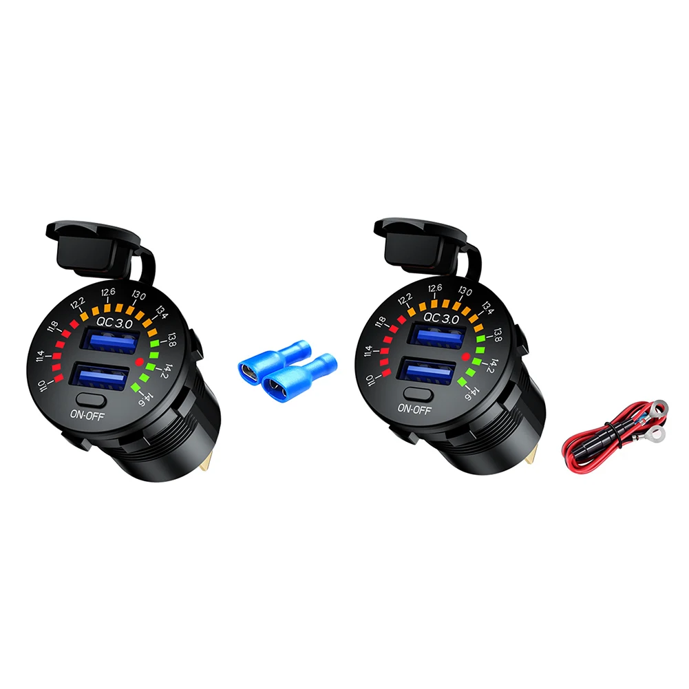Автомобильное зарядное устройство QC 3,0 с светодиодный USB-портами и светодиодным вольтметром, с выключателем ВКЛ.ВЫКЛ., комплекты кабелей питания, водонепроницаемые, 18 Вт, разъем USB PD, быстрая зарядка 12 В 24