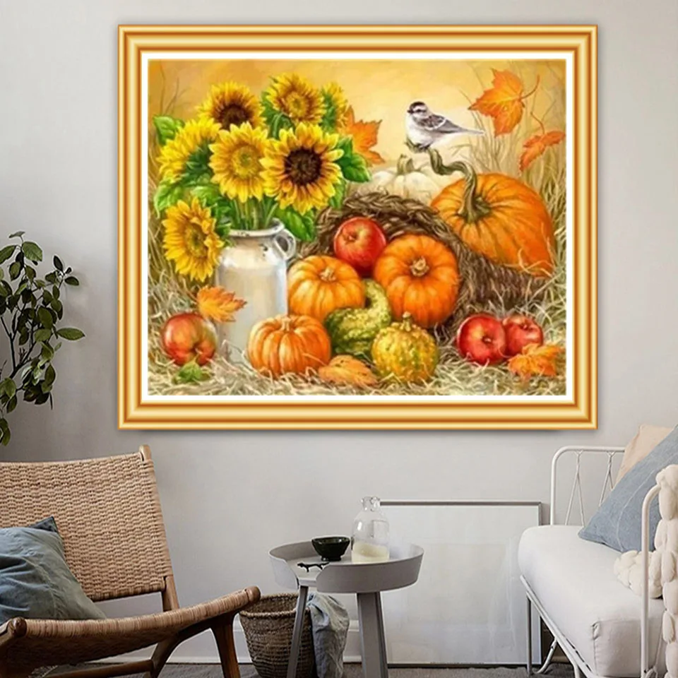 5D алмазная живопись сделай сам, фрукты, тыква, яблоко, квадратный Набор для вышивки крестиком, Алмазная мозаика, картина, роспись, украшение для дома, подарок