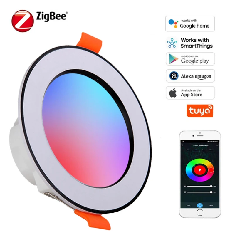 Светодиодная лампа Zigbee с регулируемой яркостью, осветительный прибор RGB с таймером и голосовым управлением, работает с Alexa Google Home, 10 Вт