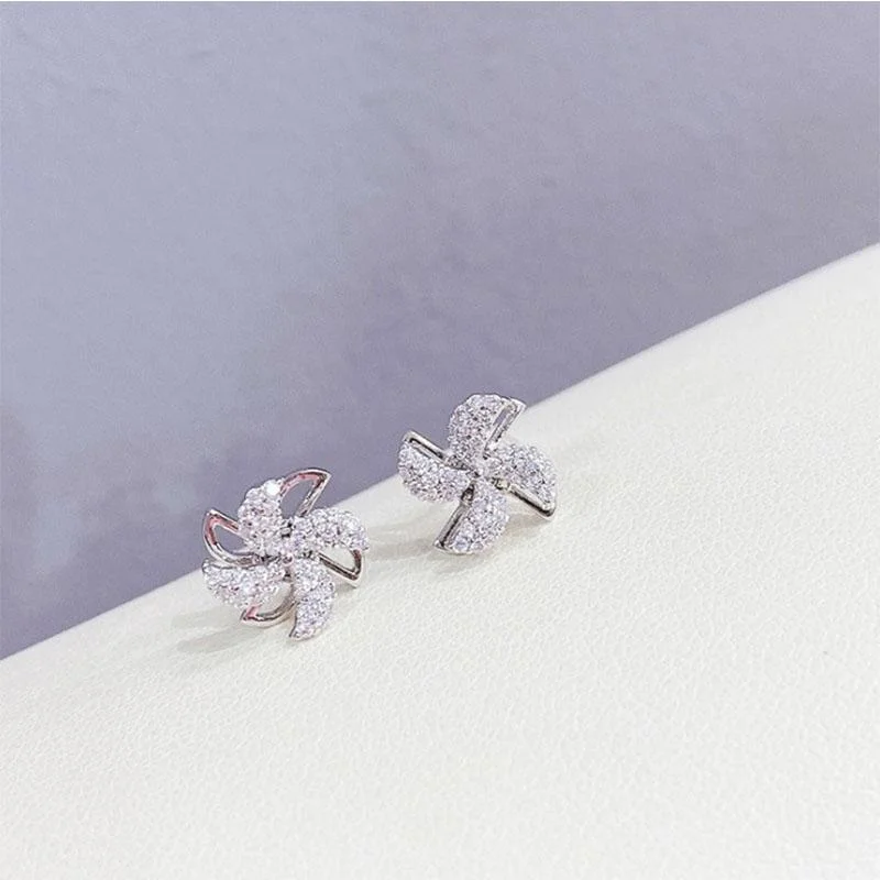 [Вдохновение для дизайна] -- Эти серьги-гвоздики с ветряной мельницей вращаются и представляют собой классические и элегантные. Когда вы или любовник прикасается к серьге, он будет вращаться и преломлять яркий светильник, как Свободное сердце, символ молодости и бездушия. Это также переводная серьга, которая приносит удачу и удачу. Носите самые красивые достоинства с этими вращающимися серьгами из кубического циркония.