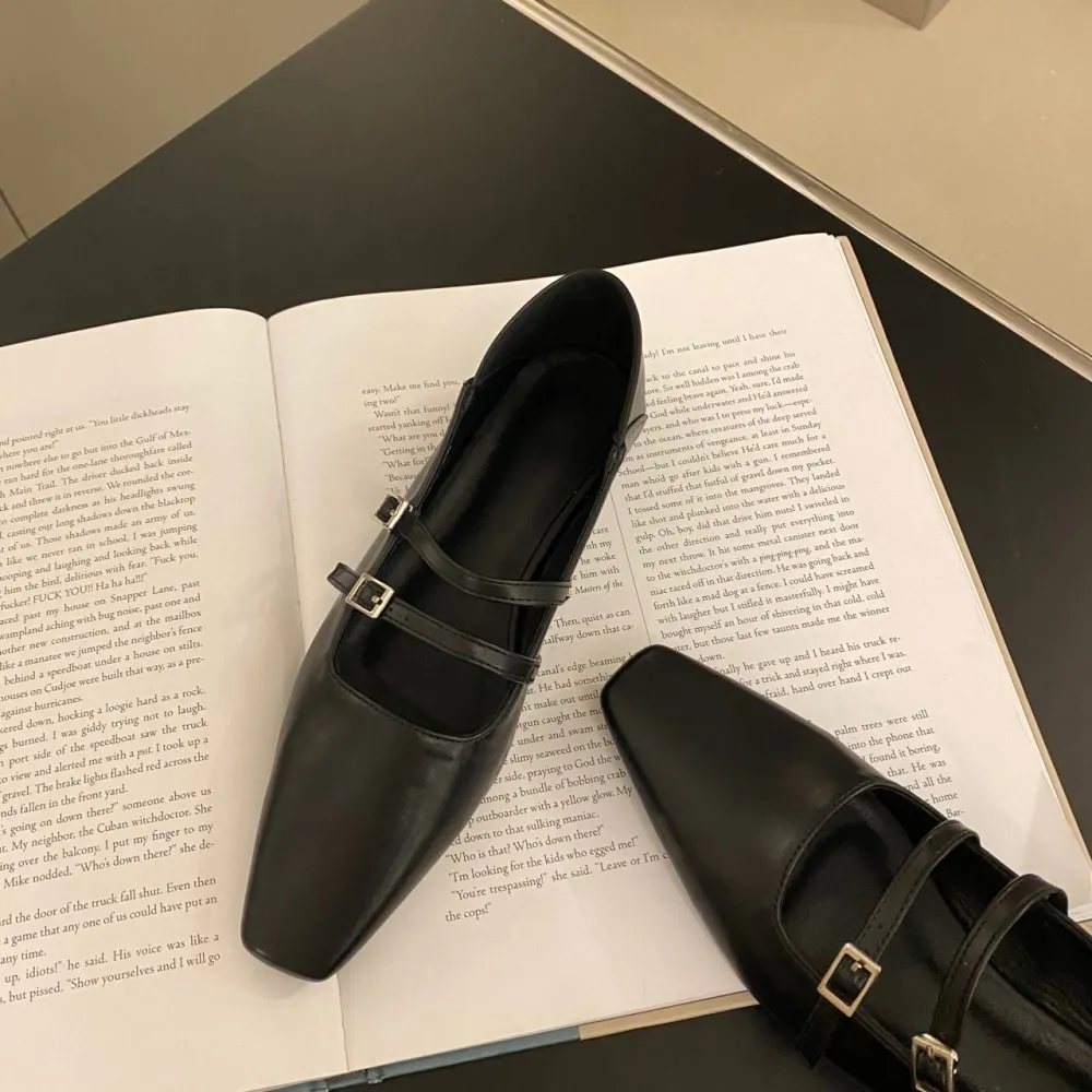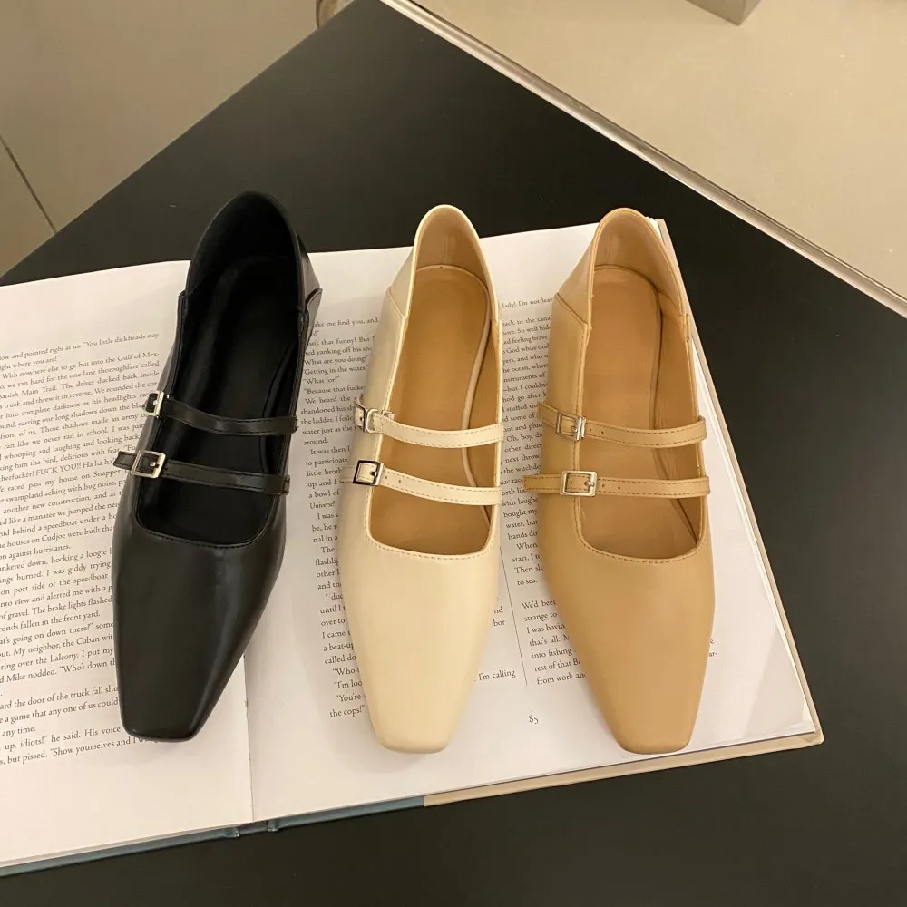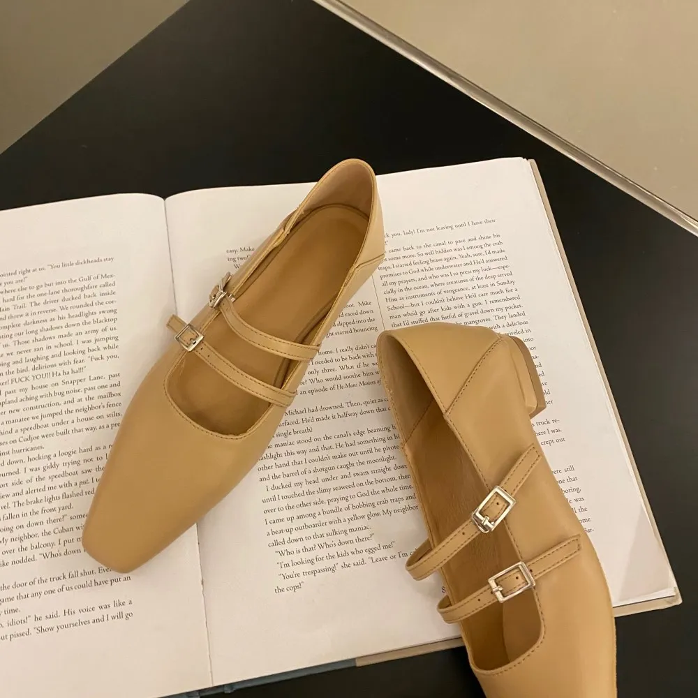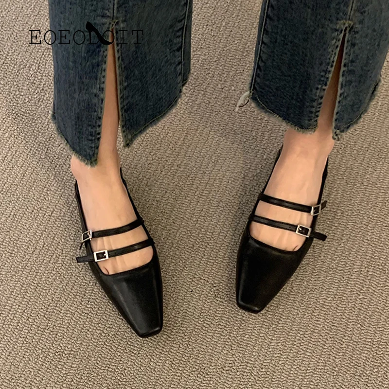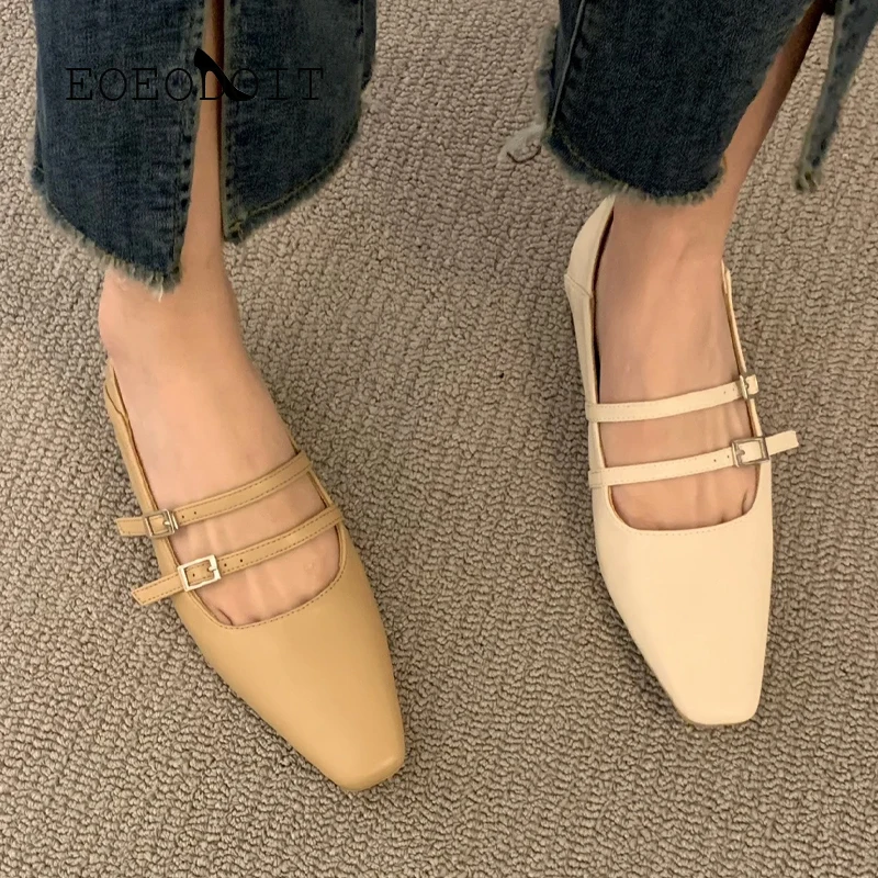 Босоножки EOEODOIT женские кожаные, Повседневные Туфли Мэри Джейн на плоской подошве, квадратный носок, двойная Пряжка, массивные сандалии, весна-лето