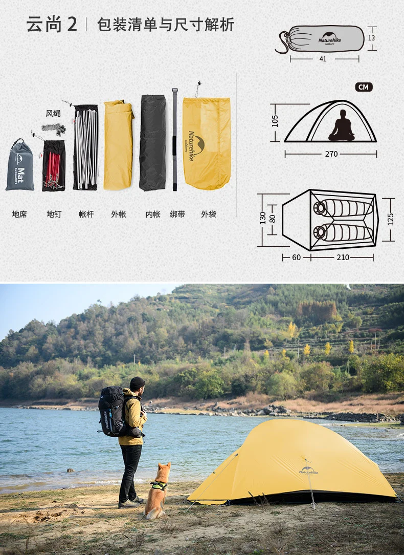 Naturehike новый цвет облако вверх Серия 2 модернизированная палатка для кемпинга Водонепроницаемая наружная походная палатка 20D нейлоновая желтая палатка для альпинизма