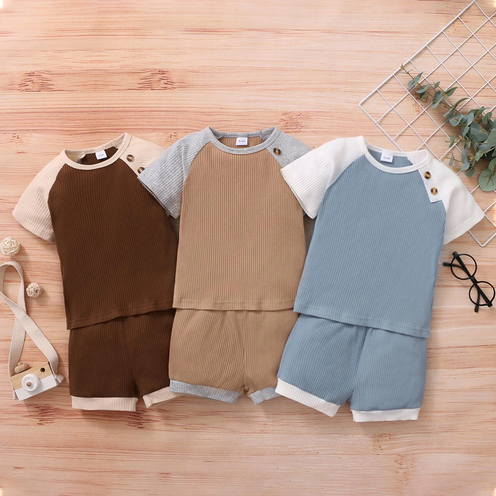 Летний комплект одежды для маленьких мальчиков, топ с коротким рукавом, футболка, однотонные шорты, комплект из двух предметов, повседневный костюм, одежда для младенцев