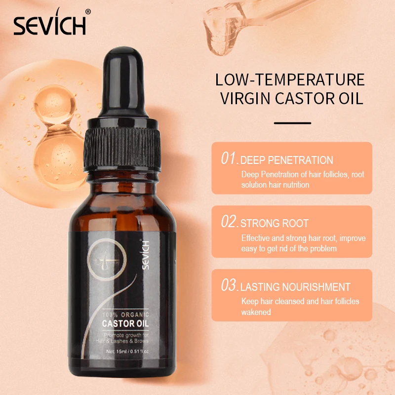Органическое касторовое масло Sevich, 15 мл, эфирное масло для волос, сыворотка для быстрого роста ресниц с кисточками для туши, жидкость для ухода за бровями