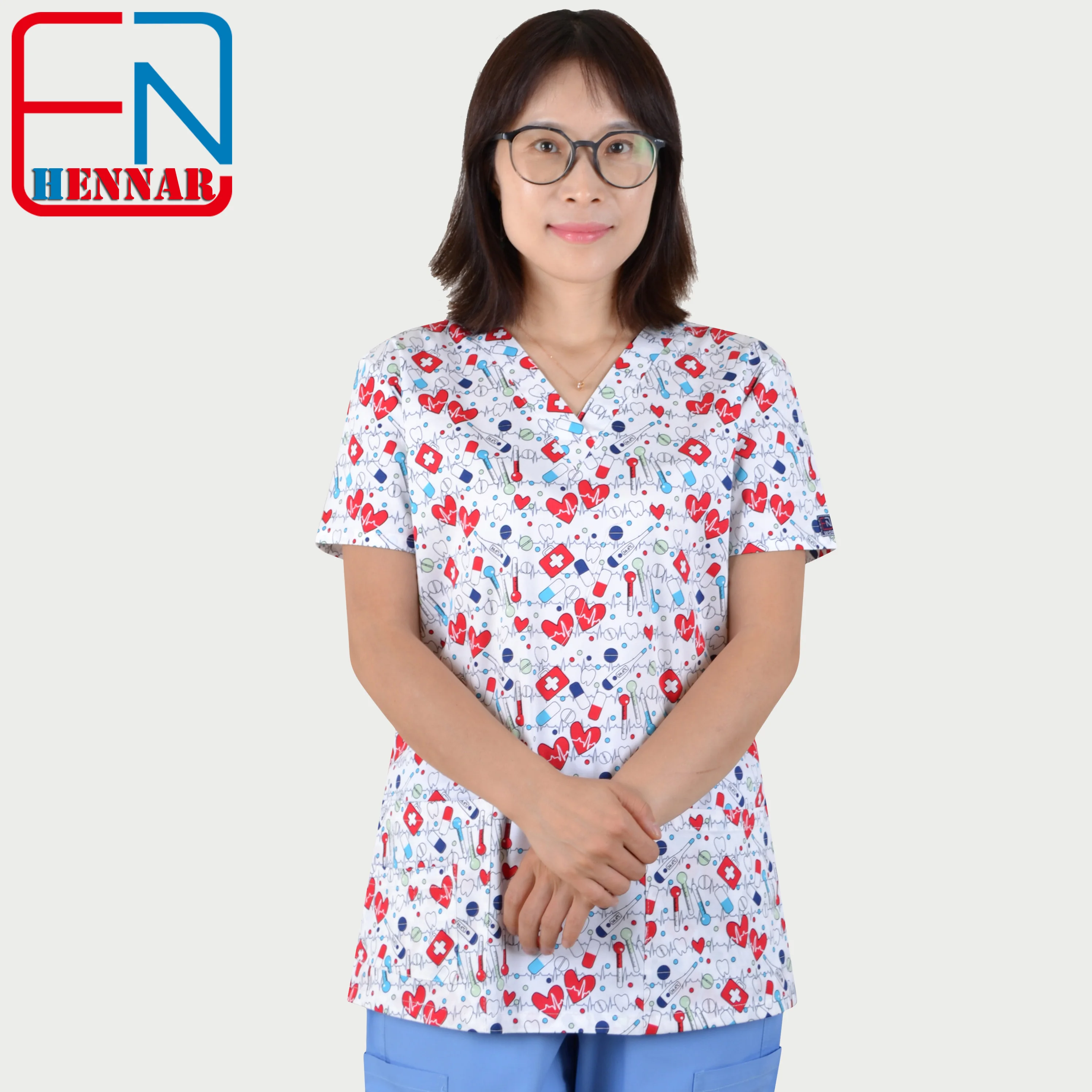 Hennar женский скраб-топ 100% с рисунком хлопчатобумажная Униформа ...