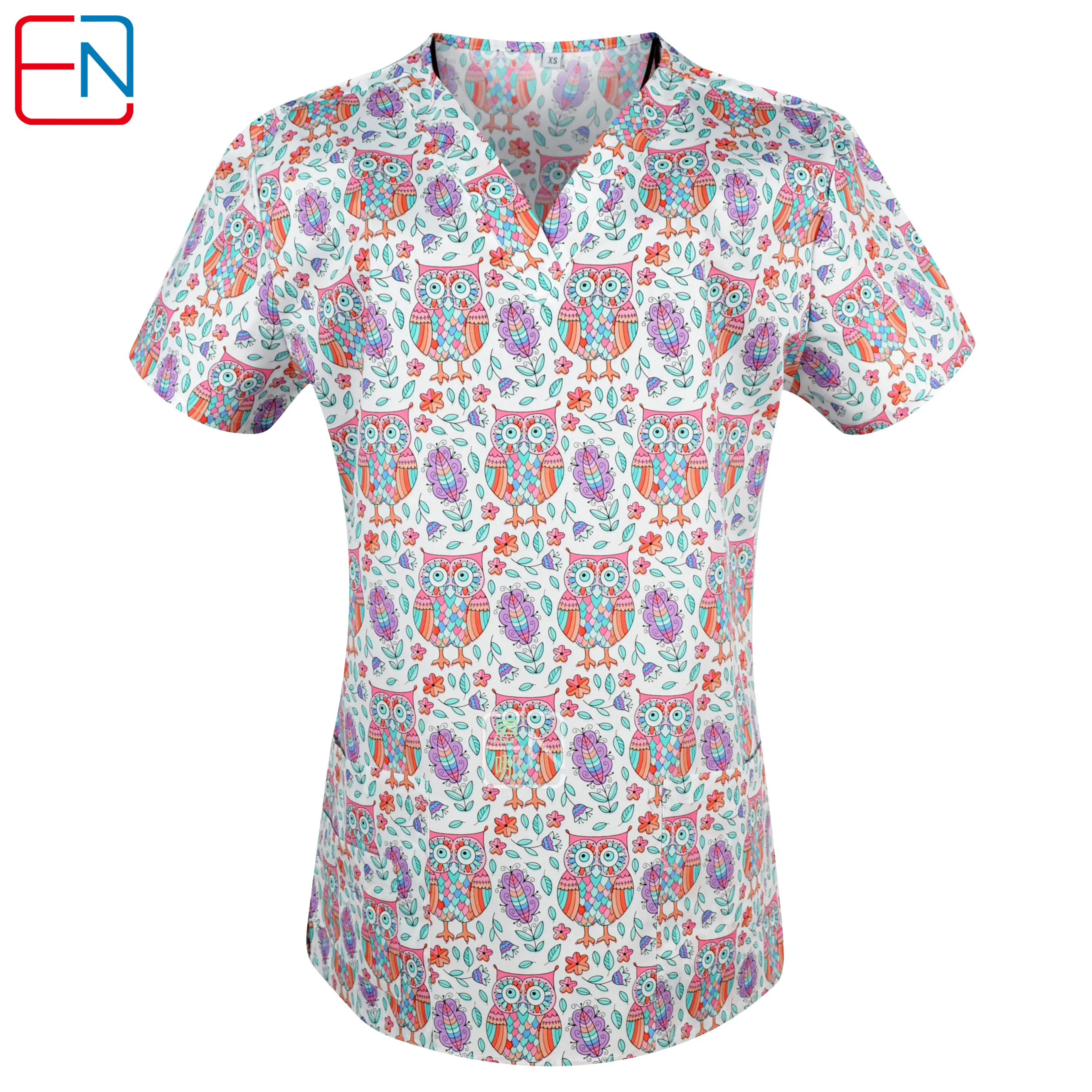 TC Прекрасный Принт scrubl униформа для женщин дышащая с v-образным...