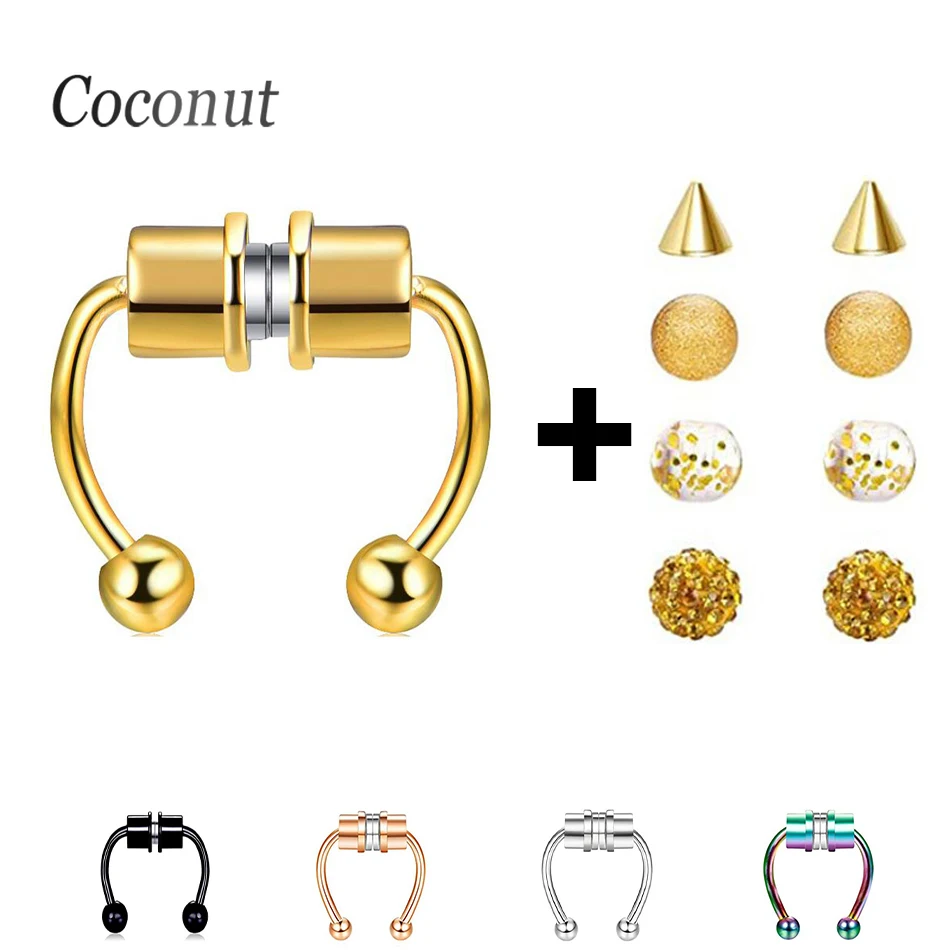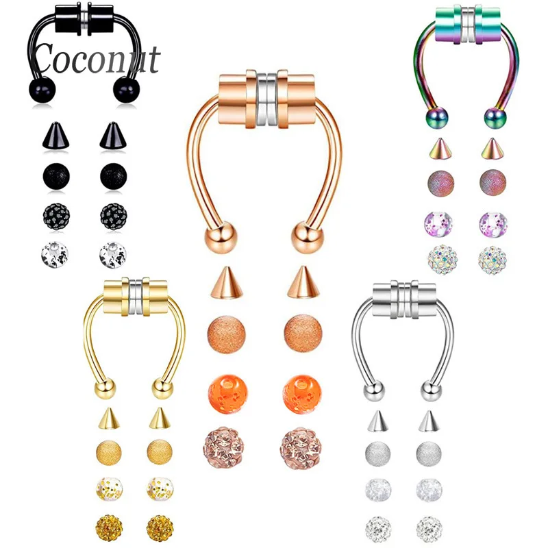 Новинка, магнитные кольца для пирсинга носа, перегородка кольцо в нос обручи, Поддельные кольца для пирсинга носа, на магните, клипса, манжета на носу, поддельный пирсинг, комплект ювелирных изделий 2021