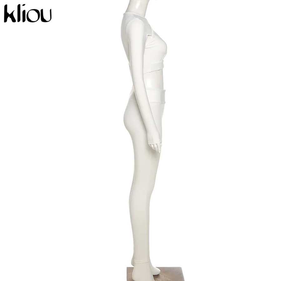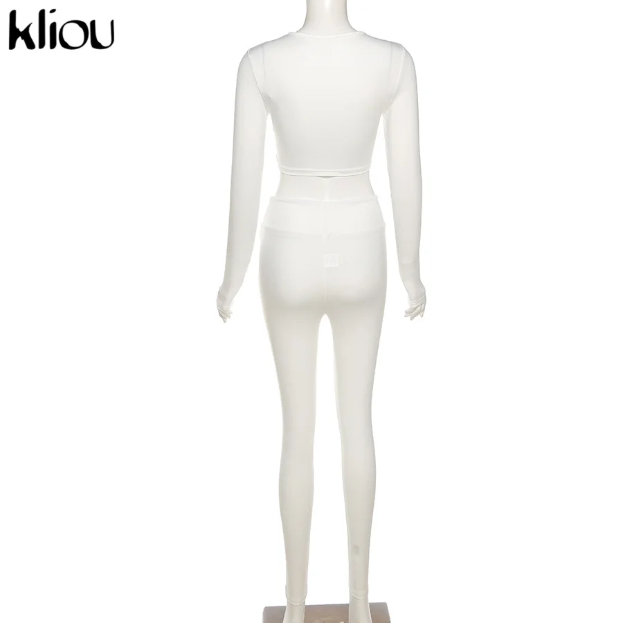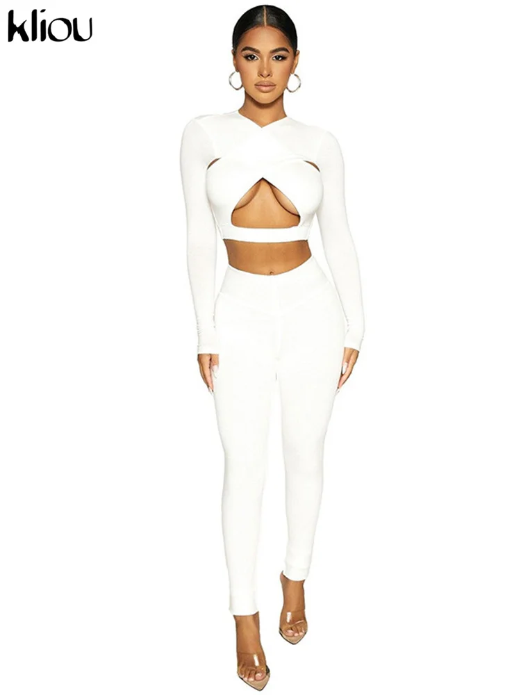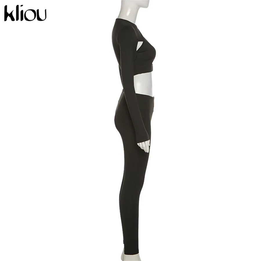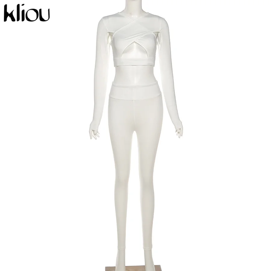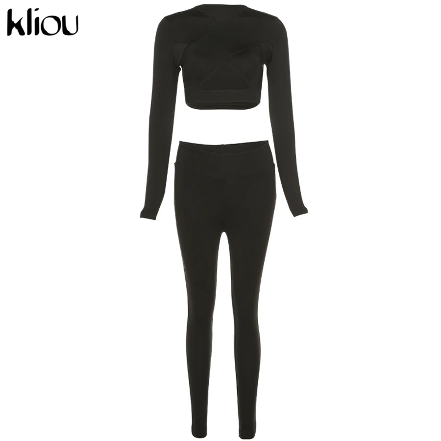 Женский комплект из двух предметов Kliou, облегающий топ с перекрещивающимися краями + Стрейчевые штаны, пикантная уличная одежда для активного отдыха