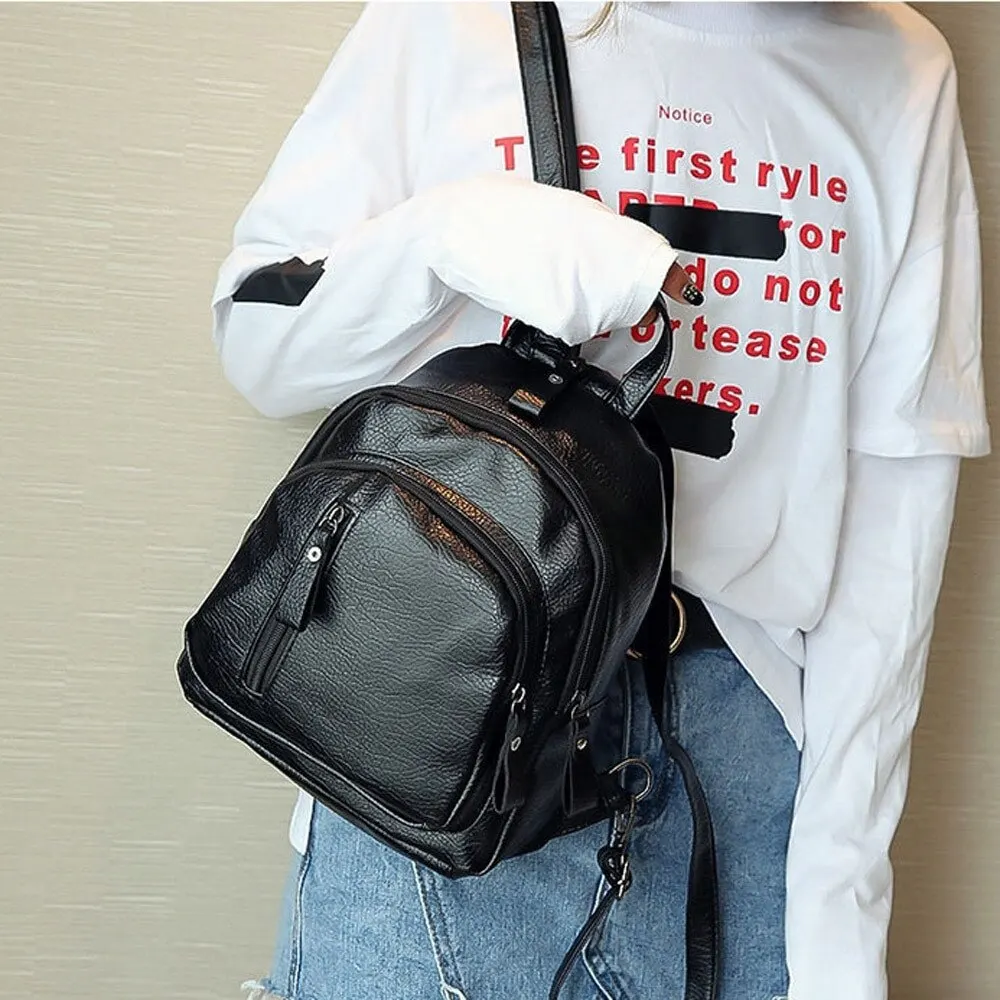 Женский рюкзак из ПУ кожи, дорожная сумка через плечо, черная школьная сумка, Многофункциональный маленький школьный рюкзак для девочек