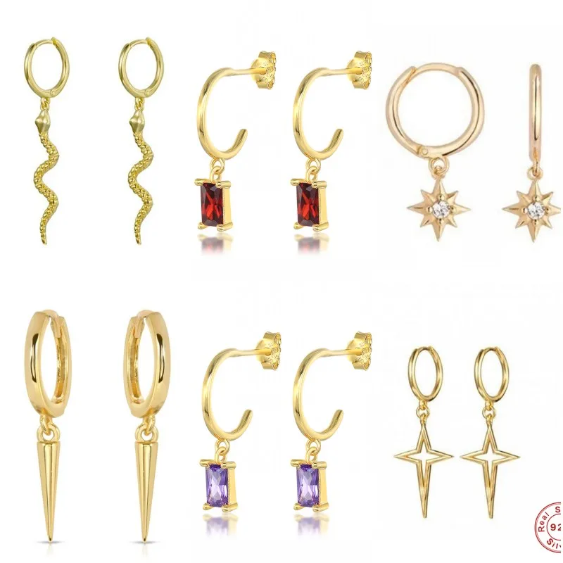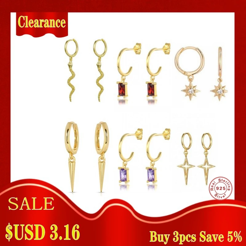 Женские серьги-кольца из настоящего серебра 925 пробы с цирконием, круглые серьги со змеиными звездами, модные ювелирные украшения