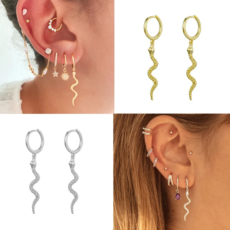 Женские серьги-подвески в виде змеи и слона из серебра 925 пробы