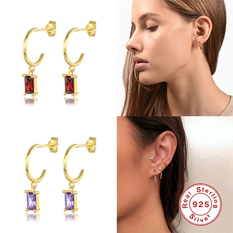 Серьги-кольца женские из серебра 925 пробы, с цирконом