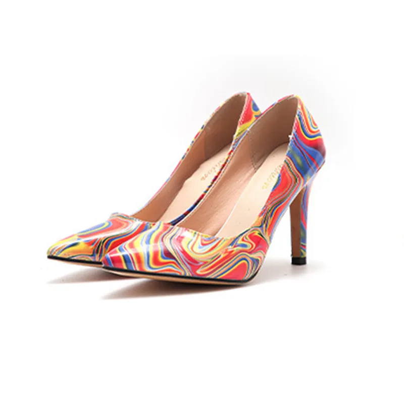 Женские босоножки, женские туфли-лодочки, новинка 2021, зеркальные женские туфли с рисунком масляной живописи, туфли больших размеров на шпильке и высоком каблуке с острым носком