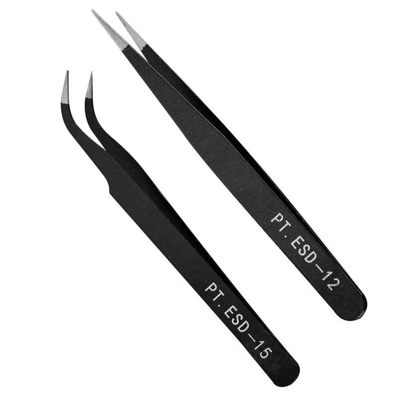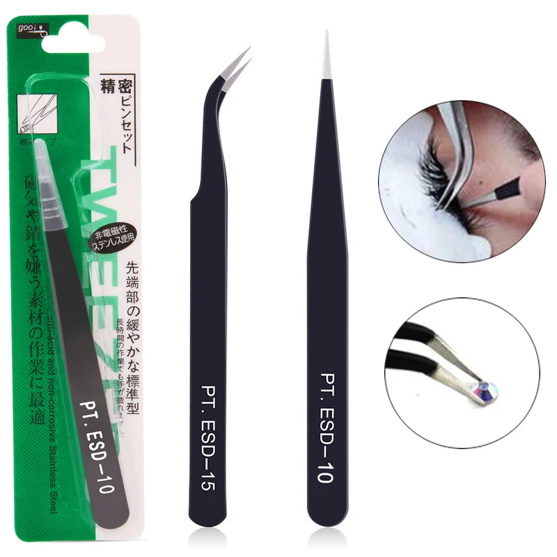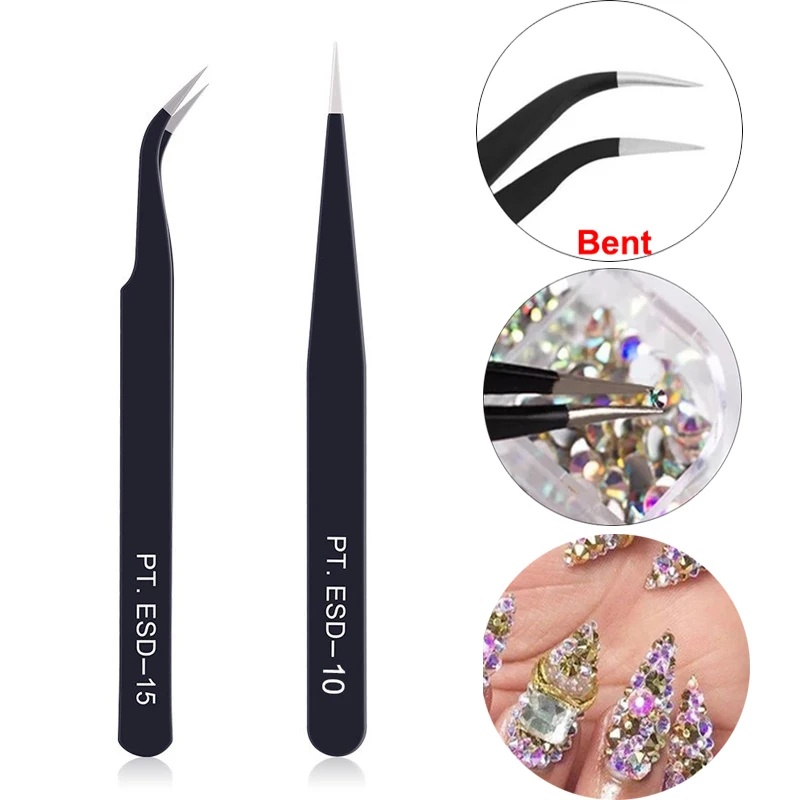 Черные изогнутые прямые пинцеты для бровей из нержавеющей стали, стразы, брикет драгоценных камней, инструмент для дизайна ногтей