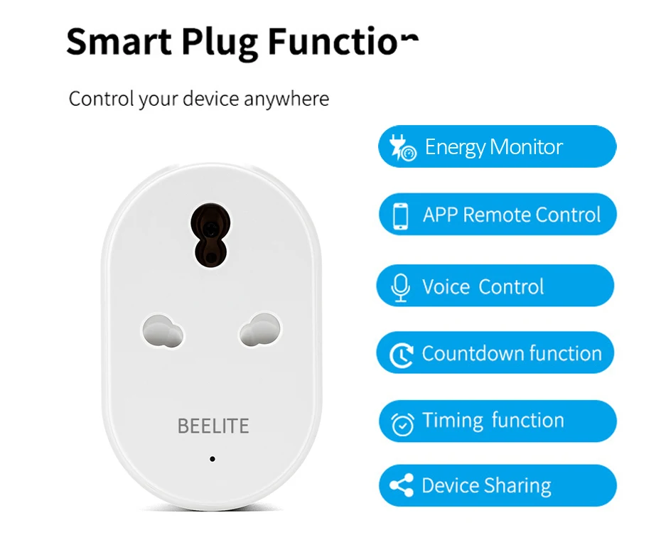 Не требуется концентратор и не нужно платить за услугу подписки. Просто подключите ваши электрические приборы в Beelite умная розетка и Подключитесь к приложение smart Life/приложение Tuya в соответствии с защищенной 2,4 ГГц сети Wi-Fi.