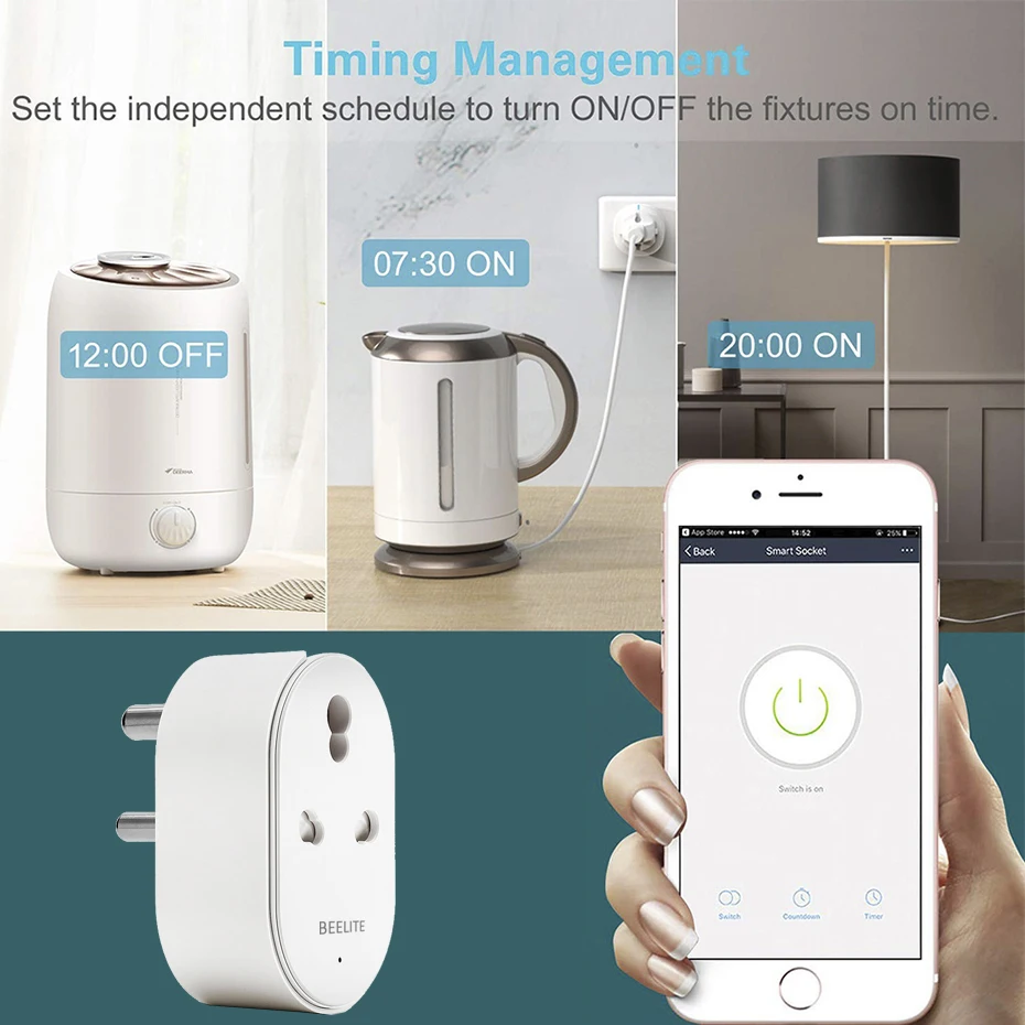 Установите смарт-вилки, включайте или выключайте автоматически в определенное время. Вы можете подготовить ужин, прежде чем отправиться домой, или дистанционно управлять другими электрическими элементами, такими как лампы, электрические чайники, кофеварки, вентиляторы и т. д. Умная вилка Beelite поможет вам сэкономить на счете за электричество и продлить срок службы продукта