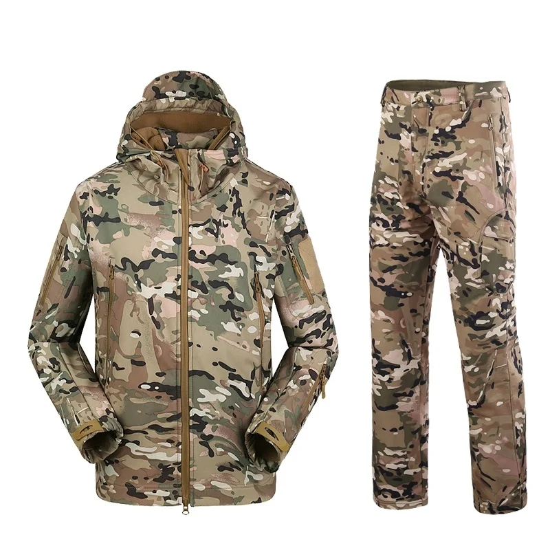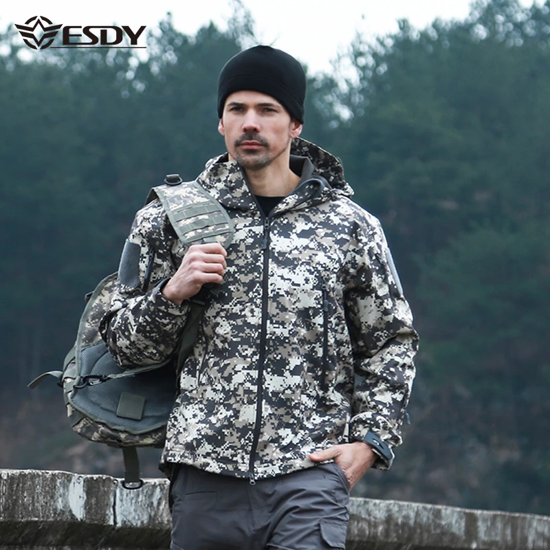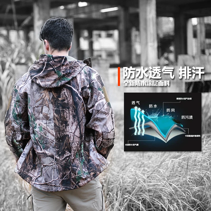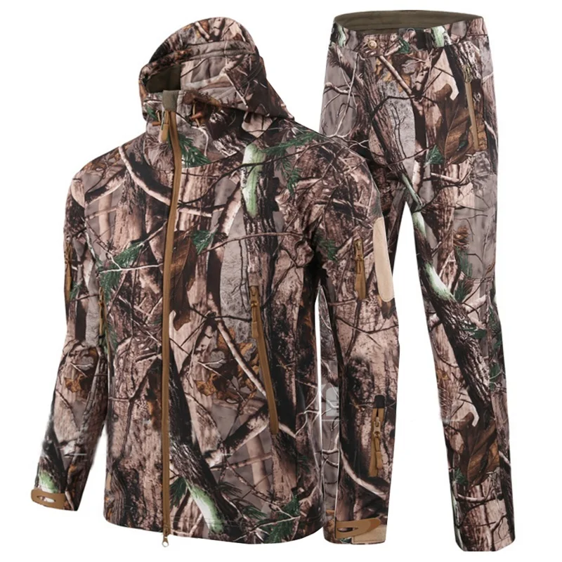 Тактическая Мягкая флисовая куртка в виде ракушки, Мужская Уличная водонепроницаемая охотничья одежда, камуфляжный Камуфляжный армейский Военный жакет, спортивные пальто