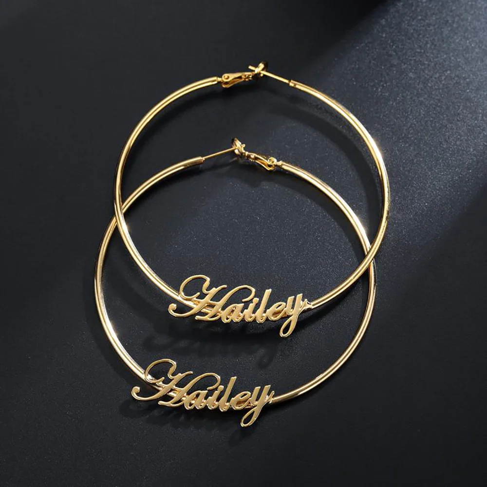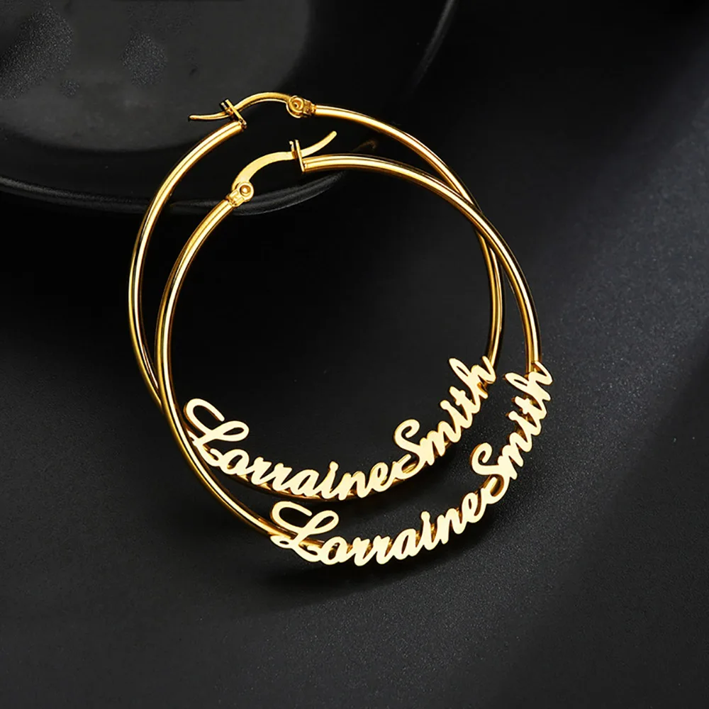 Серьги-кольца HUHUI с именем на заказ, персонализированные круглые серьги-гвоздики с именной табличкой из нержавеющей стали, украшения для ушей для женщин, подарок на день рождения